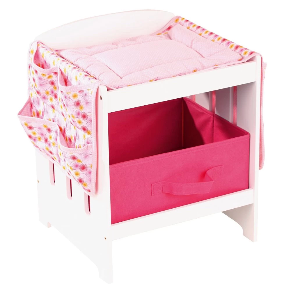 Cet accessoire indispensable pour toutes les petites mamans à partir de 3 ans comprend un matelas à langer nettoyable, un compartiment amovible rose fuchsia pour stocker les couches et autres vêtements de rechange ainsi que des poches latérales pour avoir le strict nécessaire à portée de main.