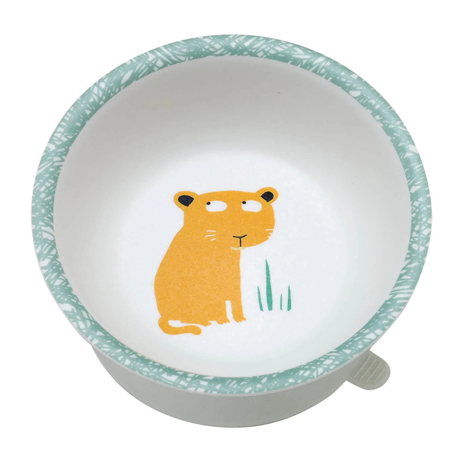 Ce set est composé d’un bol ventouse joliment décoré avec une illustration représentant un lion et d’une cuillère illustrée d’un zèbre.