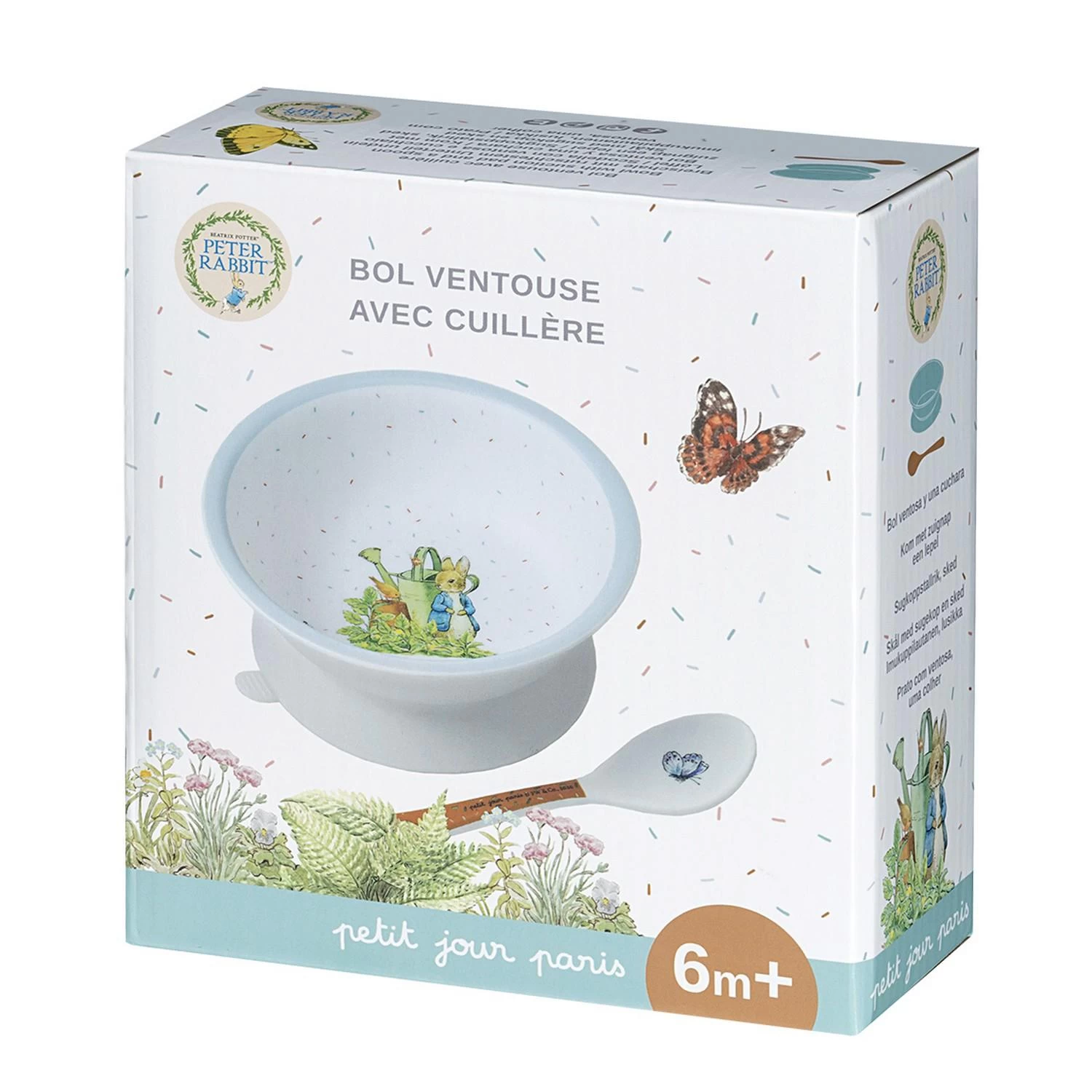 Grâce à sa ventouse, le bol ne bouge plus et permet à bébé d’apprendre à manger tout seul sans renverser le contenu de son bol ! La cuillère est toute ronde, sans danger pour les petits aux gestes imprécis.
