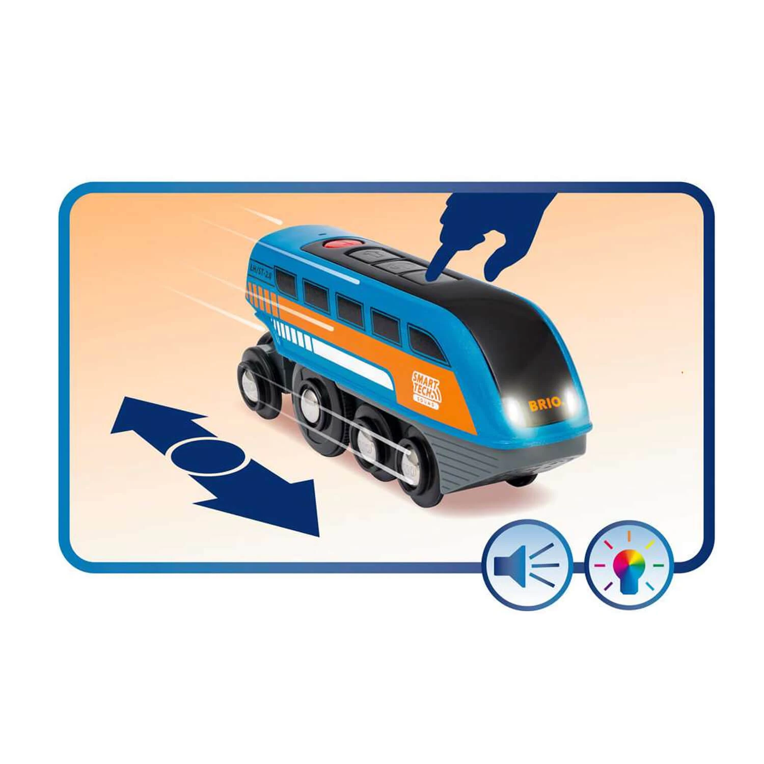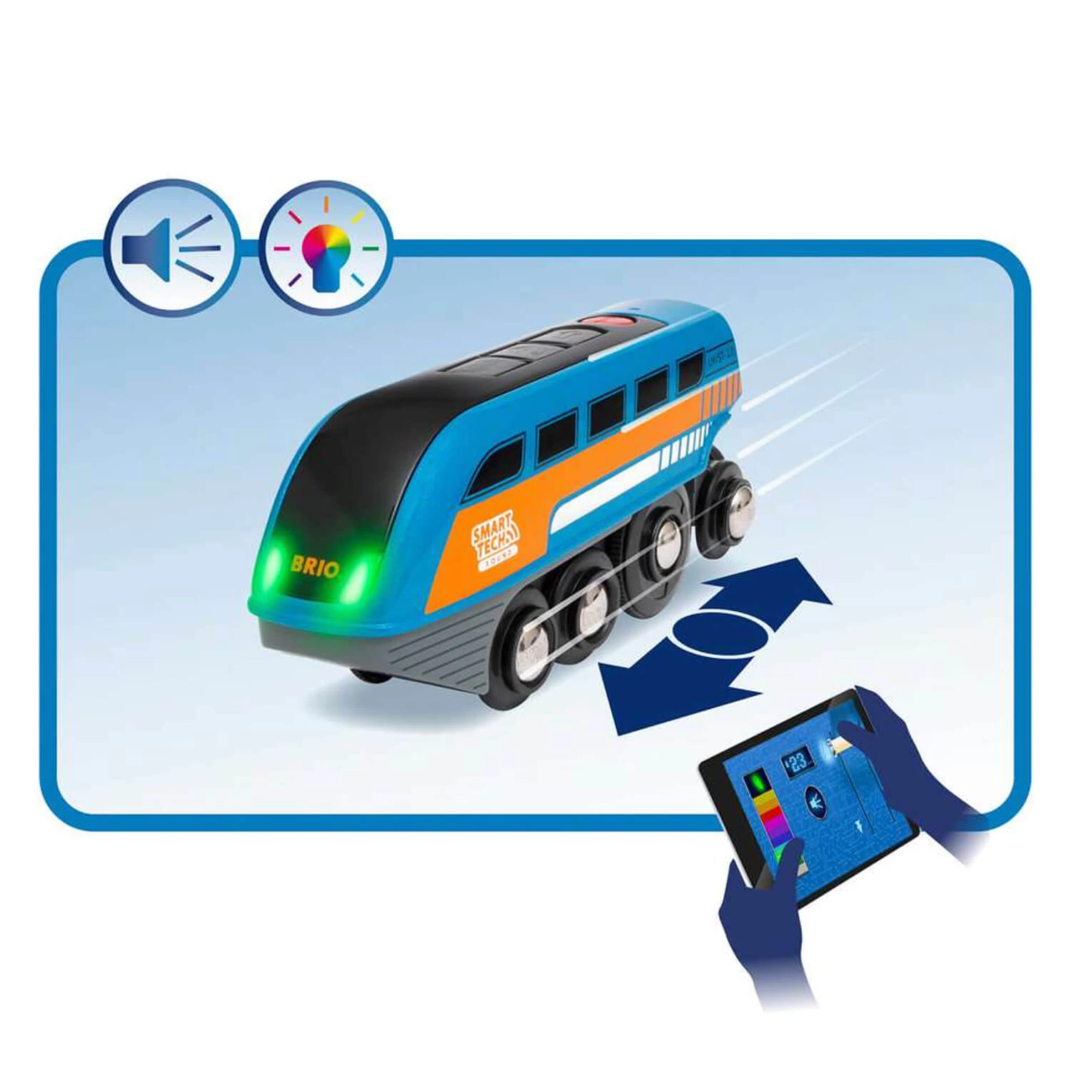La technologie Smart Tech Sound permet à la locomotive de communiquer avec son environnement. La locomotive répond automatiquement aux accessoires Smart Tech en réagissant par des effets lumineux, des mouvements ou des sons qui viennent soutenir encore davantage l’imagination des enfants.
