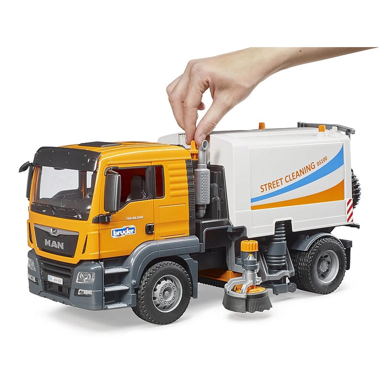 Le nettoyage des rues constitue une aide indispensable pour chaque administration municipale et fait partie du paysage urbain de tous les jours. Aucun autre vĂ©hicule n’assure la propretĂ© des routes et des trottoirs avec autant d’efficacitĂ©. Le nouveau vĂ©hicule de nettoyage des rues BRUDER montre dans les moindres dĂ©tails la fonctionnalitĂ© de ce camion passionnant. Le MAN TGS est le partenaire idĂ©al. De fabrication robuste, dotĂ© de moteurs puissants allant jusqu’Ă 500 CV et capable de supporter une charge utile supĂ©rieure Ă la moyenne, ce camion est le prototype du vĂ©hicule Ă tout faire.