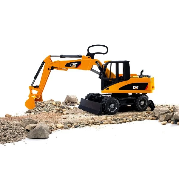 La pelleteuse Caterpillar possède un bras manoeuvrable, prolongé par une pelle amovible. La cabine peut pivoter a 360°.