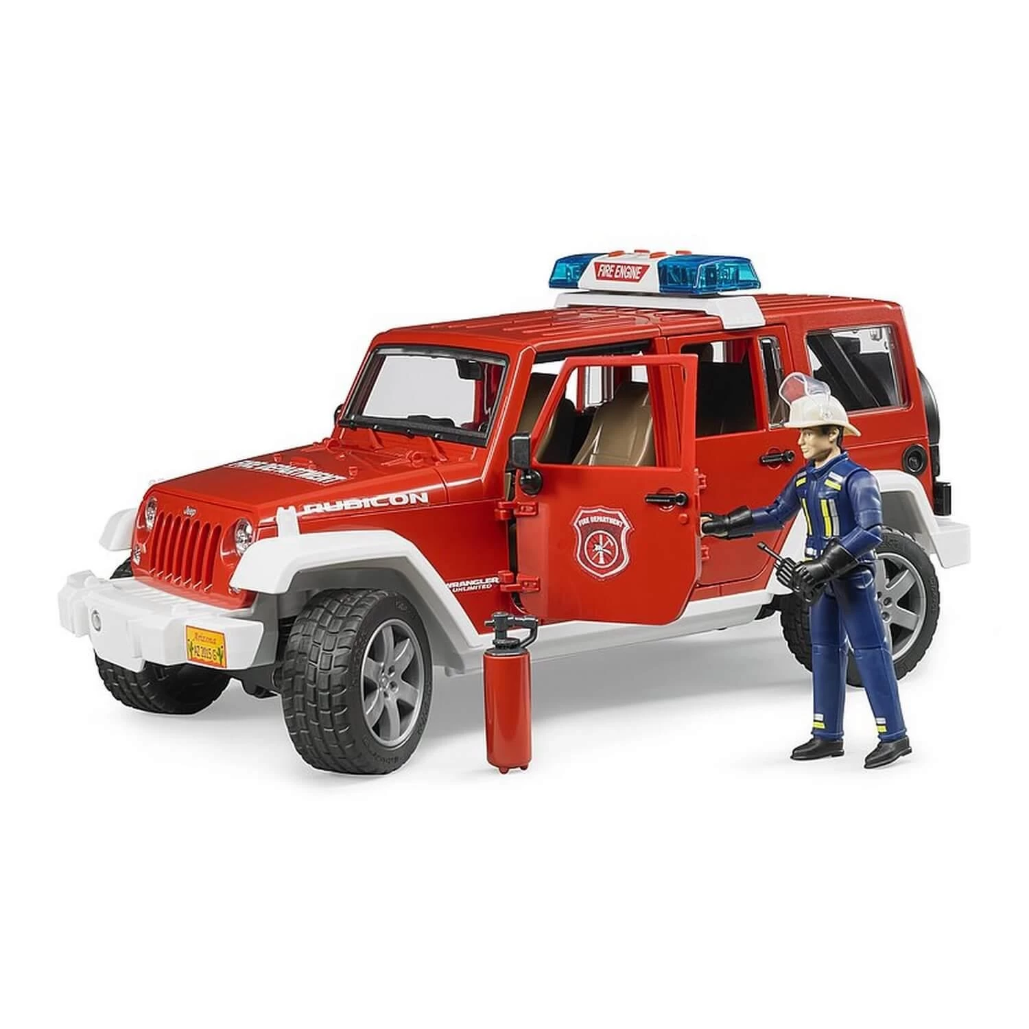 Découvrez le véhicule pompier Jeep Wrangler Unlimited Rubicon à l’échelle 1:16 de la marque Bruder.