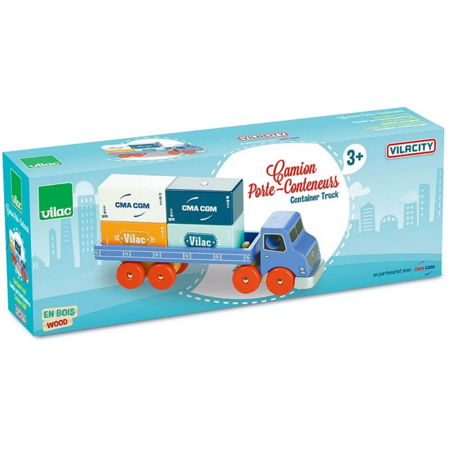 Faites découvrir à votre enfant ce camion porte-conteneurs en bois aimanté Vilac !