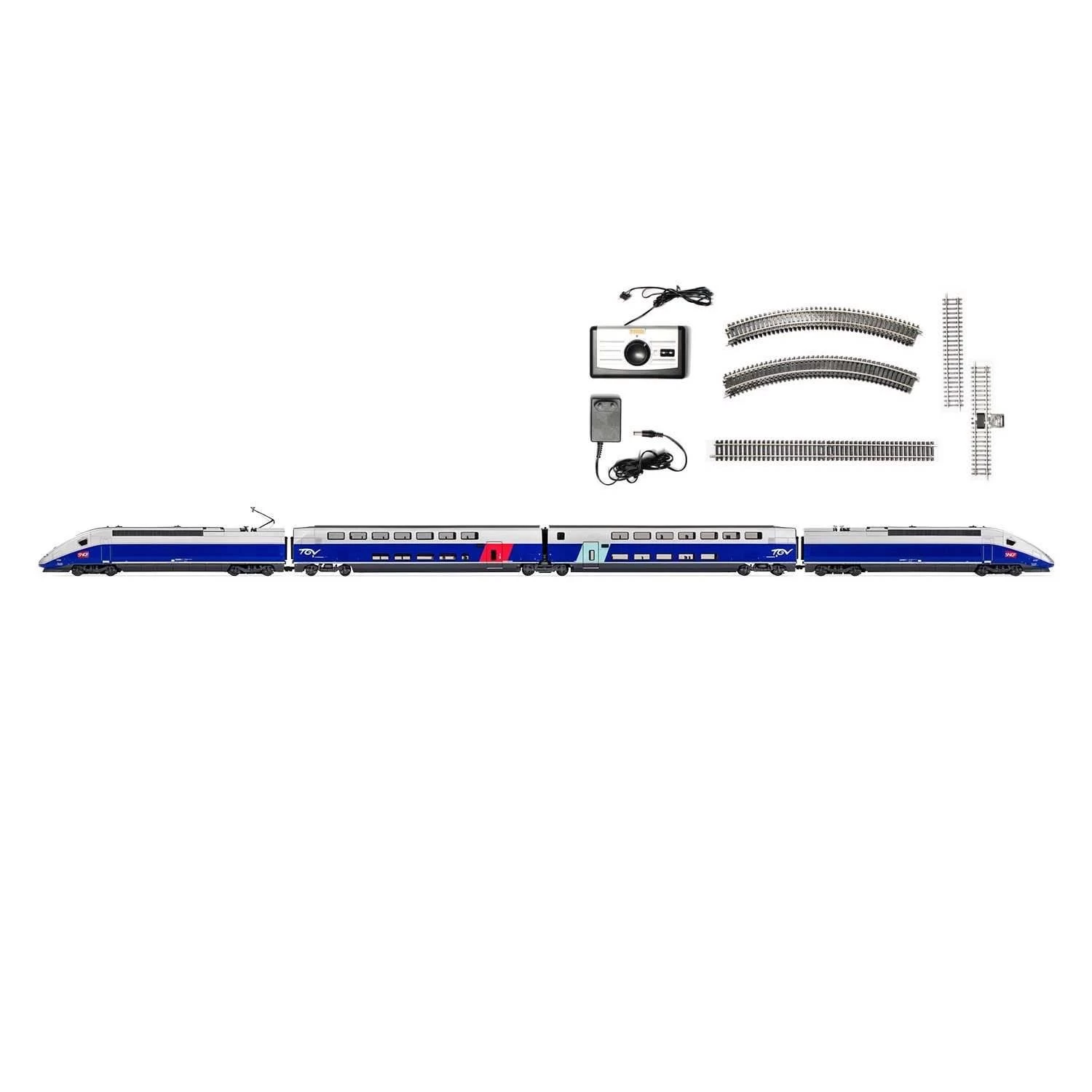 circuit de la gamme Junior est idĂ©al pour dĂ©marrer dans l’univers des trains Ă©lectriques Ă partir de 8 ans. Ce coffret de dĂ©part contient tout ce qu’il faut pour dĂ©buter, il comprend ainsi 1 rame de TGV avec 4 Ă©lĂ©ments, 1 ovale de voie avec rails droits et courbes, 1 transformateur 220V et 1 rĂ©gulateur de vitesse.