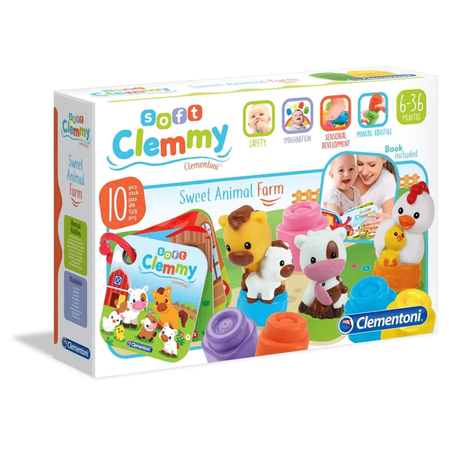 La boîte contient 6 Clemmy à empiler et 3 couples d’animaux maman/petit ainsi qu’un petit livre pour développer son imagination et ses émotions. Une vache et son veau, un cheval et son poulain, une poule et son poussin, avec ces figurines colorées et attachantes votre enfant pourra s’inventer ses premières histoires.