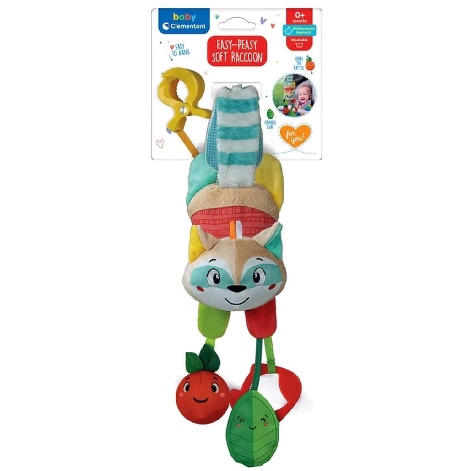 Le mobile Raton-laveur de la gamme Easy-Peasy de la marque Clementoni est une peluche d’activités facile à transporter qui va occuper Bébé partout !