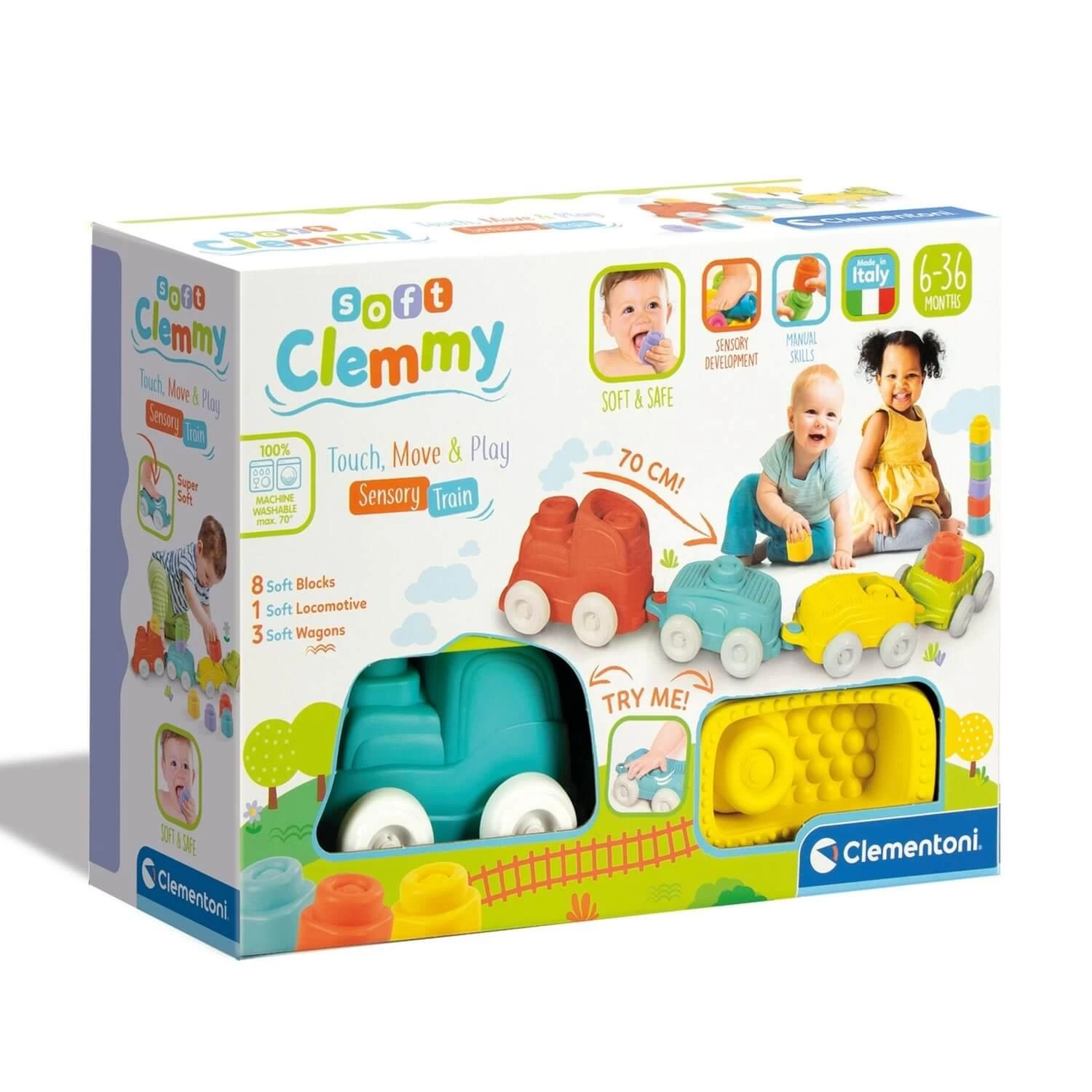 Un train avec la locomotive et ses wagons avec lesquels les enfants peuvent jouer et explorer. Les enfants peuvent découvrir les surfaces en relief, les différentes formes et ressentir la douceur du matériau Clemmy, tout en profitant d’une expérience sensorielle qui leur permettra de perfectionner leur sens du toucher et leurs compétences manuelles.