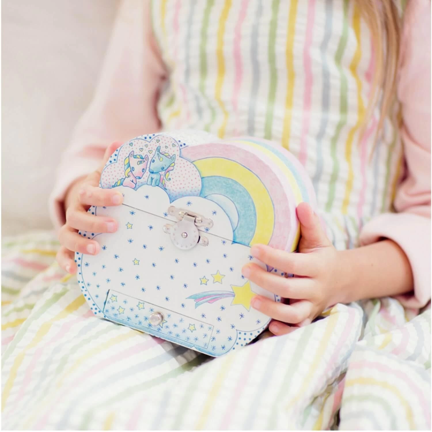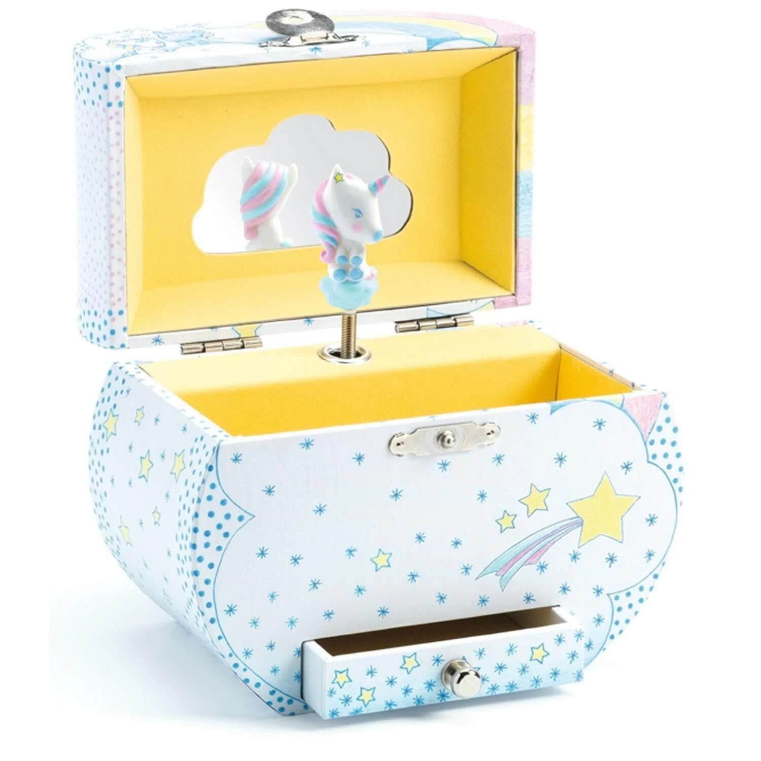 Découvrez la boîte à musique et à bijoux intitulée “Rêves de licornes” de la marque Djeco.