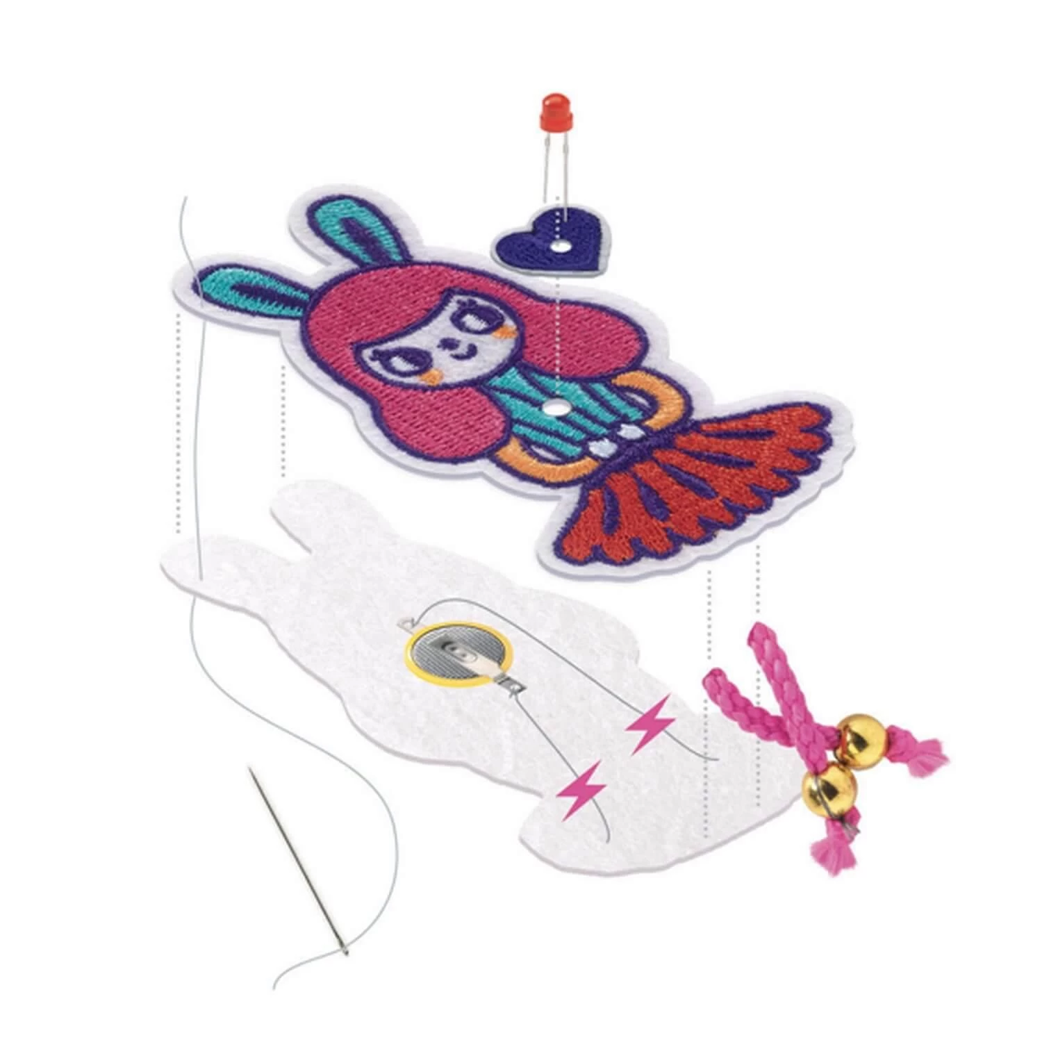 Un coffret créatif alliant couture et expérimentation afin de réaliser une belle broche qui s’illuminera au gré de ses mouvements grâce à des LEDs et un système électrique. Votre enfant utilisera le fil conducteur pour créer des circuits électriques intégrés à la broche qui s’éclairera comme par magie !