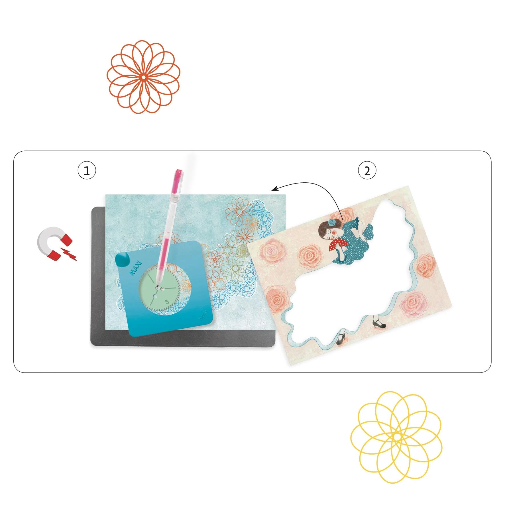 Avec ce coffret “Spirales”, votre enfant pourra crĂ©er de magnifiques dessins et laissera sa crĂ©ativitĂ© s’exprimer. Astucieux ! La plaque en mĂ©tal sur laquelle s’aimante le support de roue aide Ă dessiner les spirales sans bouger. Lâenfant peut alors composer et agrĂ©menter les tenues des jeunes filles en toute libertĂ©. Un loisir crĂ©atif ludique et amusant pour les enfants.