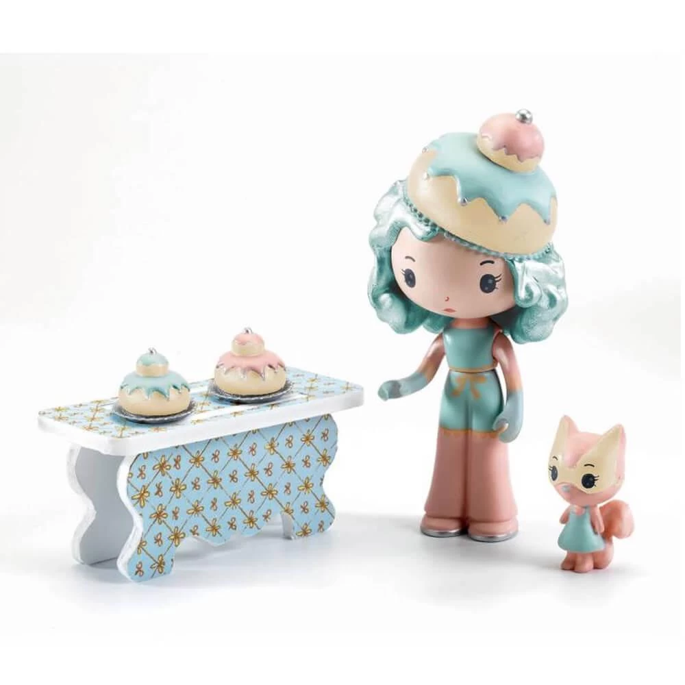 Imaginez les histoires de la figurine Charlie et de son inséparable compagnon Nut dans ce joli décor miniature plein de poésie avec son stand de pâtisseries et sa table remplie de gourmandises.