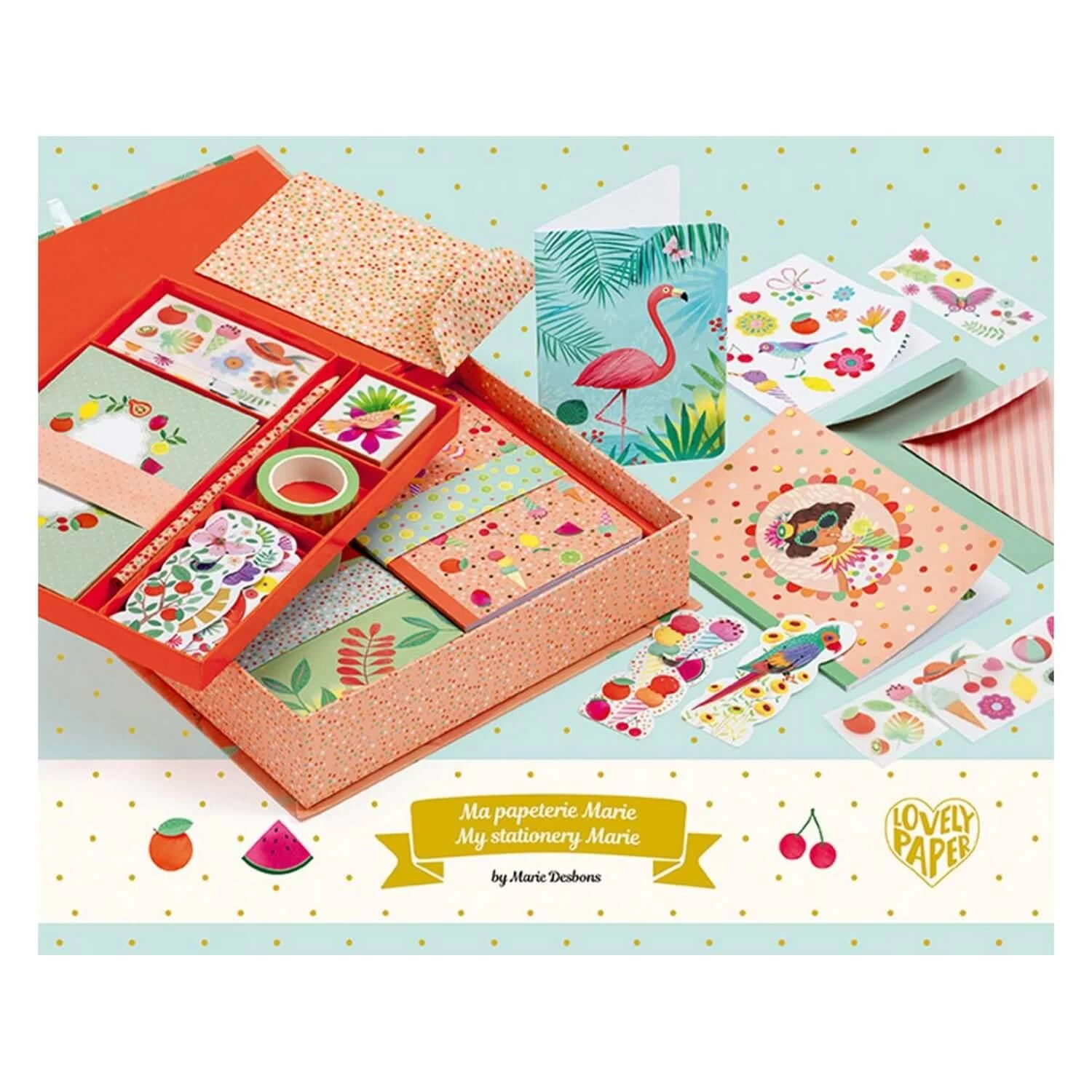 Voici le plus complet des coffrets : le coffret de “papeterie Marie” de la marque Djeco.