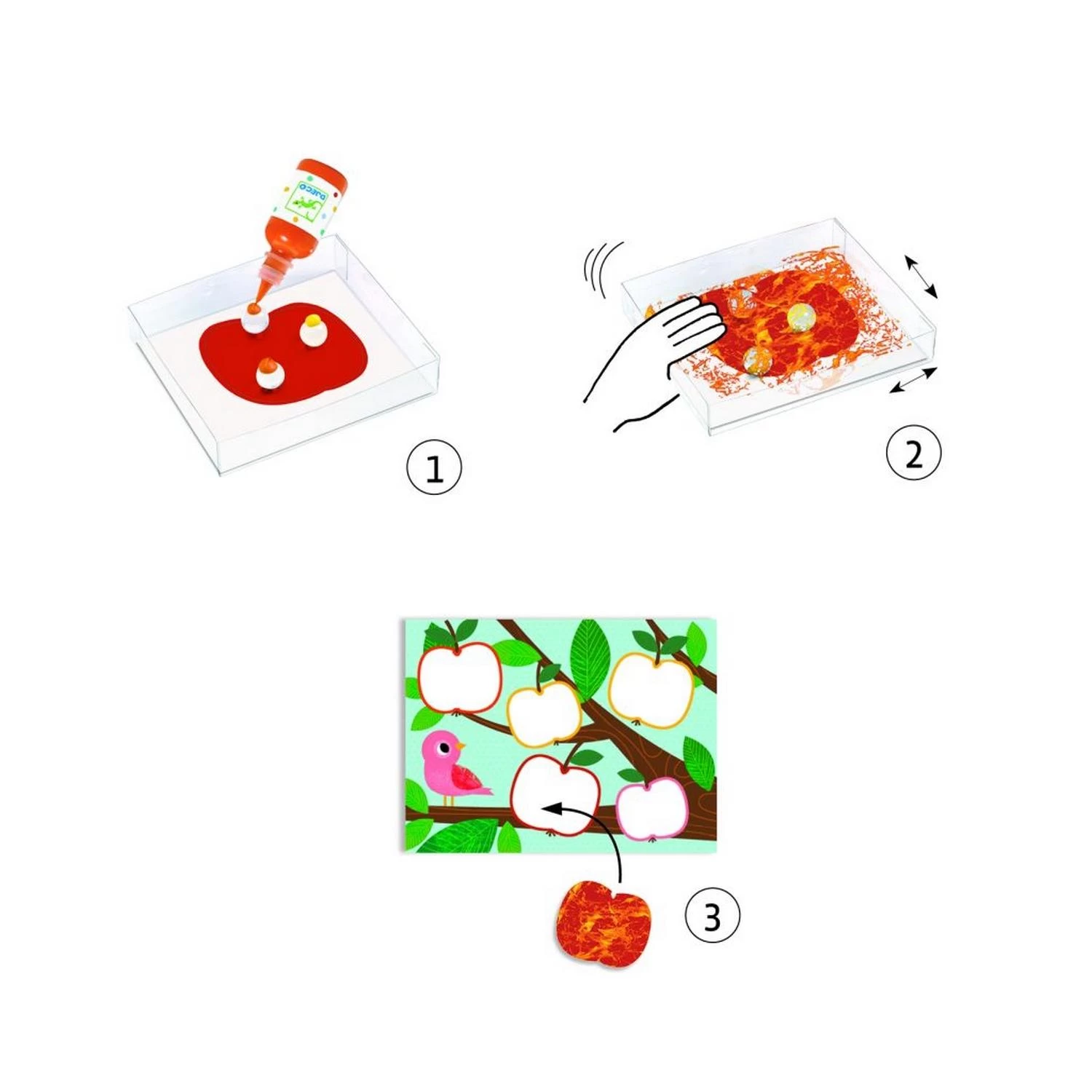Le principe est simple, posez les silhouettes dans la boite puis les 3 billes sur lesquelles on dĂ©pose de grosses gouttes de peinture. Fermez la boite et secouez-la. Vous pourrez apercevoir que la peinture va se retrouver sur la silhouette qui, aprĂšs avoir sĂ©chĂ©, pourra ĂȘtre intĂ©grĂ© sur le dĂ©cors.