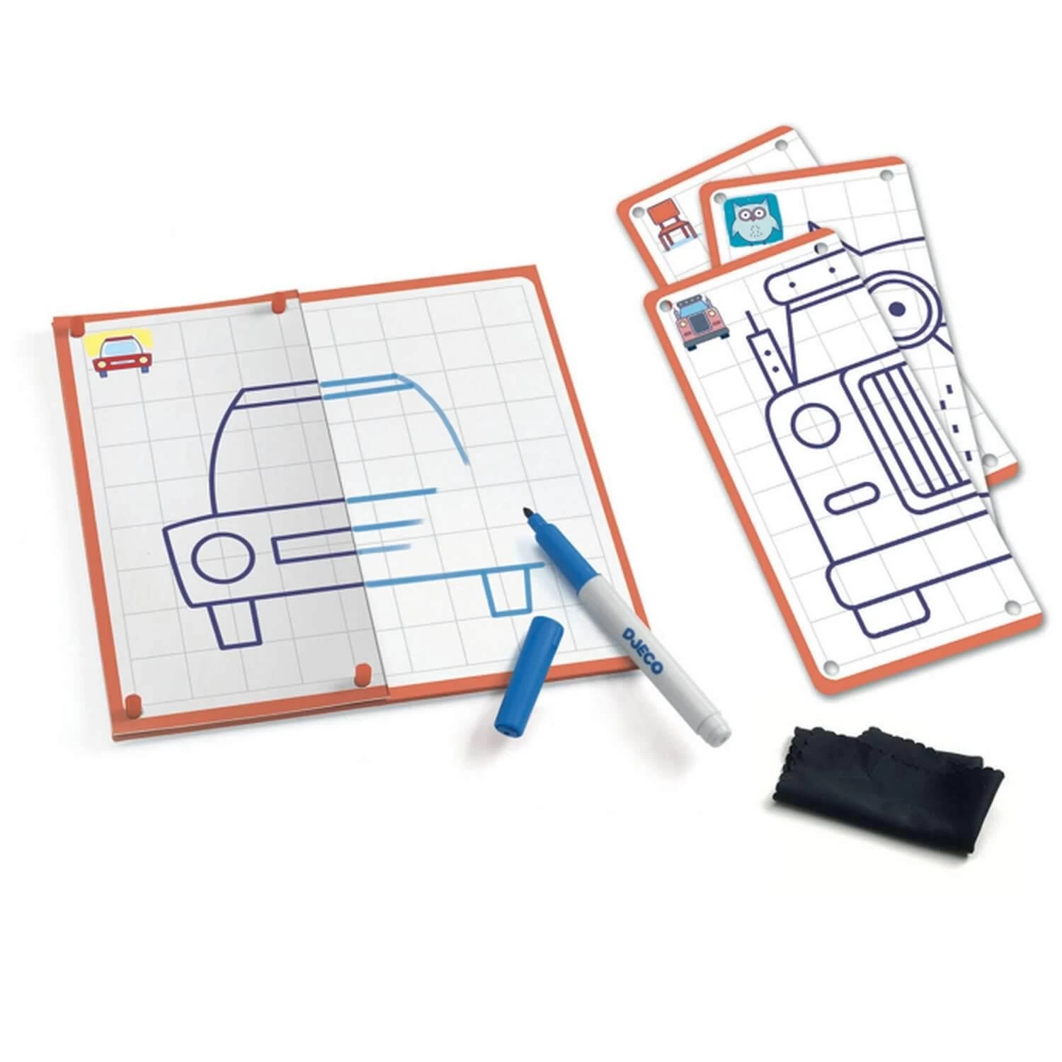Ce jeu ludique apprendra à votre enfant à réaliser de beaux dessins étape par étape. Les cartes modèles sont à placer sur le plateau quadrillé pour guider l’enfant. Une première approche de la symétrie axiale !
