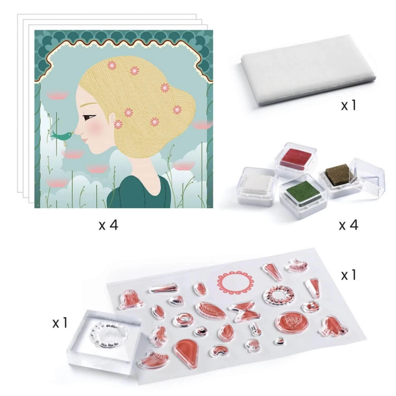 Découvrez le coffret de tampons intitulé “Motifs et parures” de la marque Djeco.