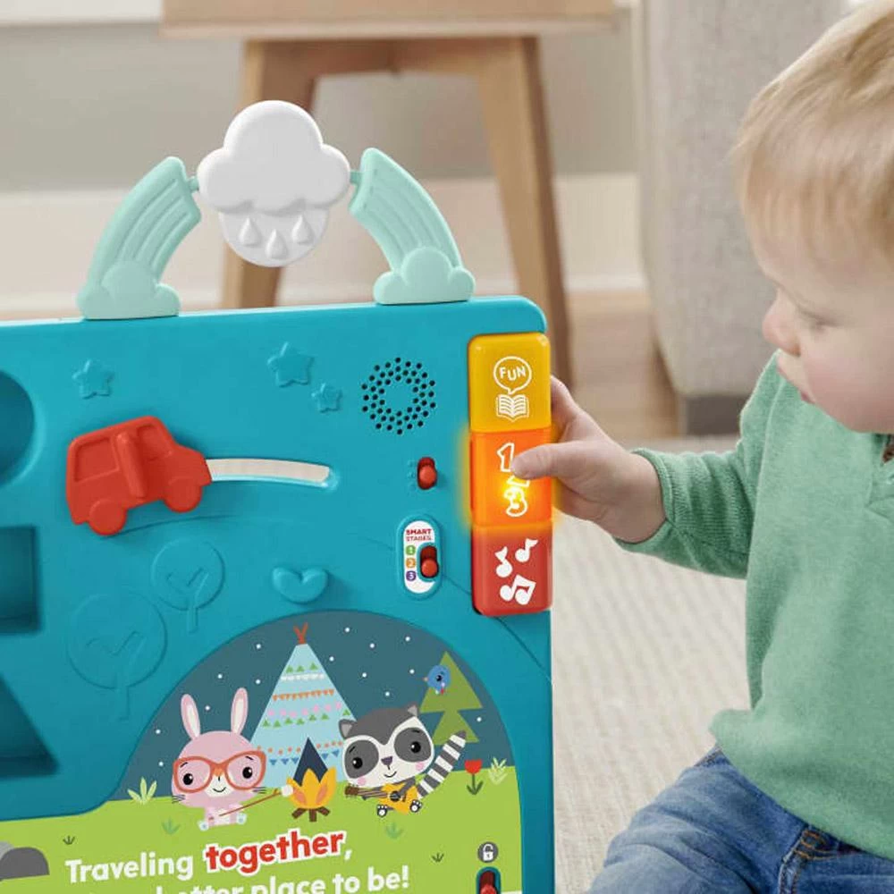 Mon Grand Livre d’Activités Évolutif de Fisher-Price® est un jouet d’éveil électronique 2 en 1 qui se transforme de grand livre à explorer assis à centre d’activités à explorer debout, avec une zone de jeu à 360 degrés.