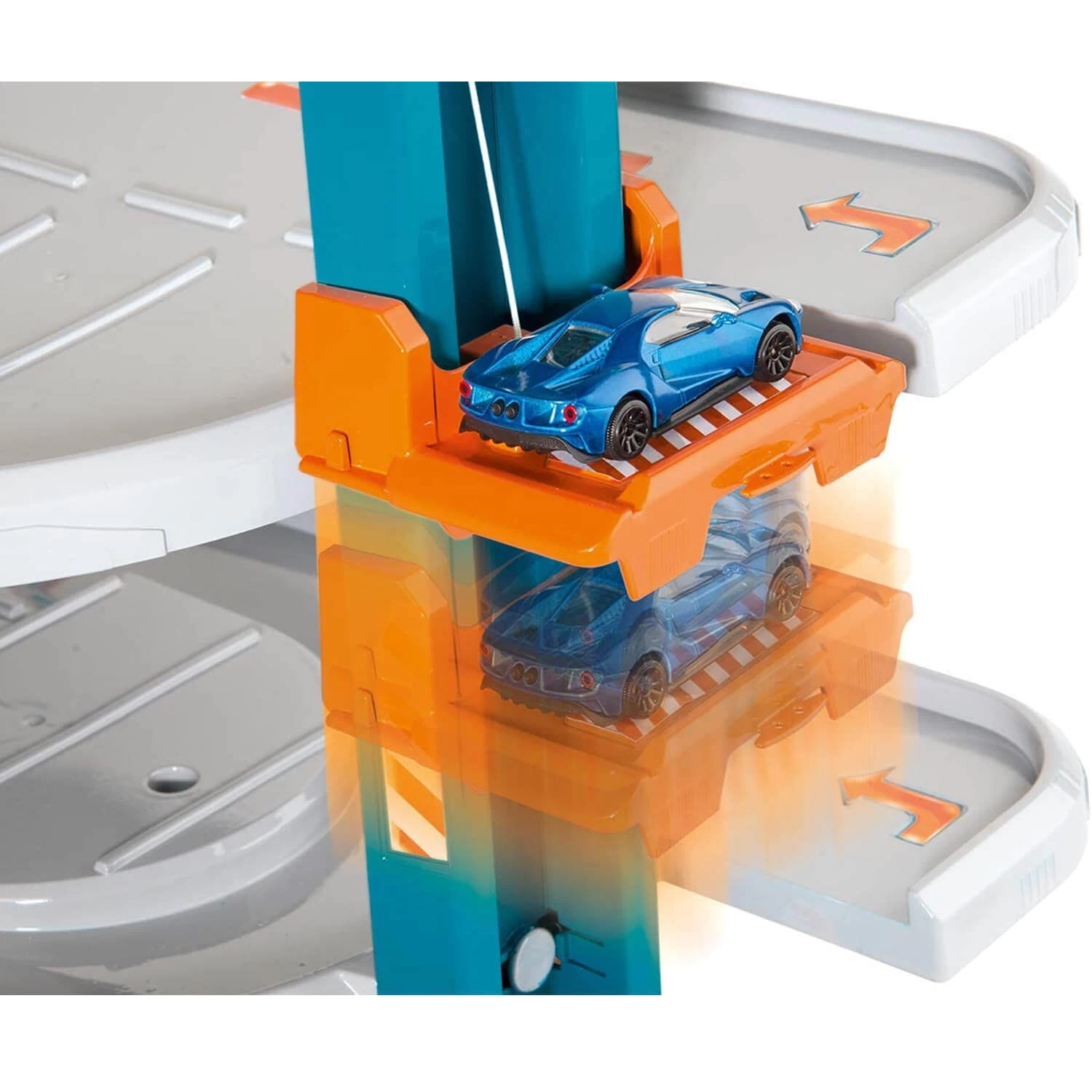 Découvrez le garage à voitures City Flex de Majorette pour s’amuser des heures entières à faire des tours de voiture entre les différents étages !