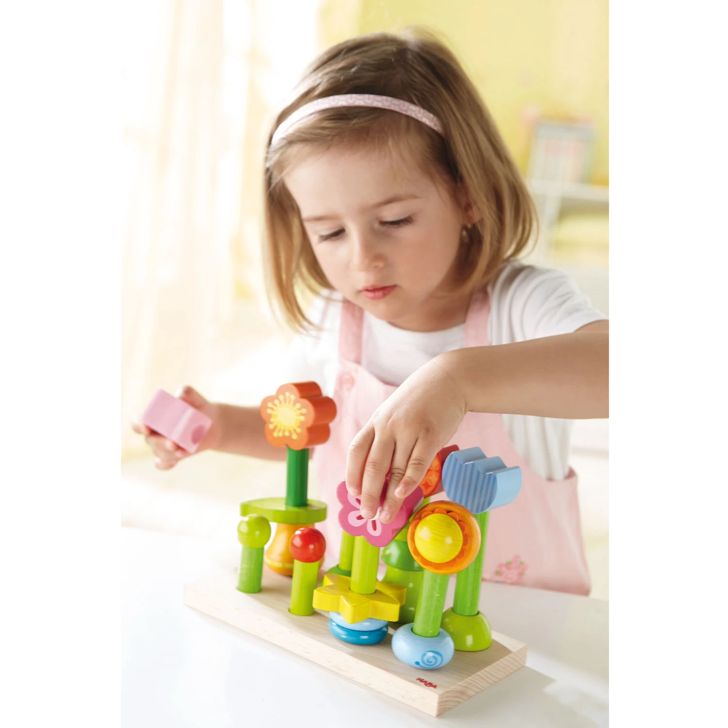 Dans ce joli jardin, tout est vert et en fleurs. Les têtes des fleurs, les feuilles et les tiges s’emboîtent les unes dans les autres pour réaliser des créations florales à son goût.