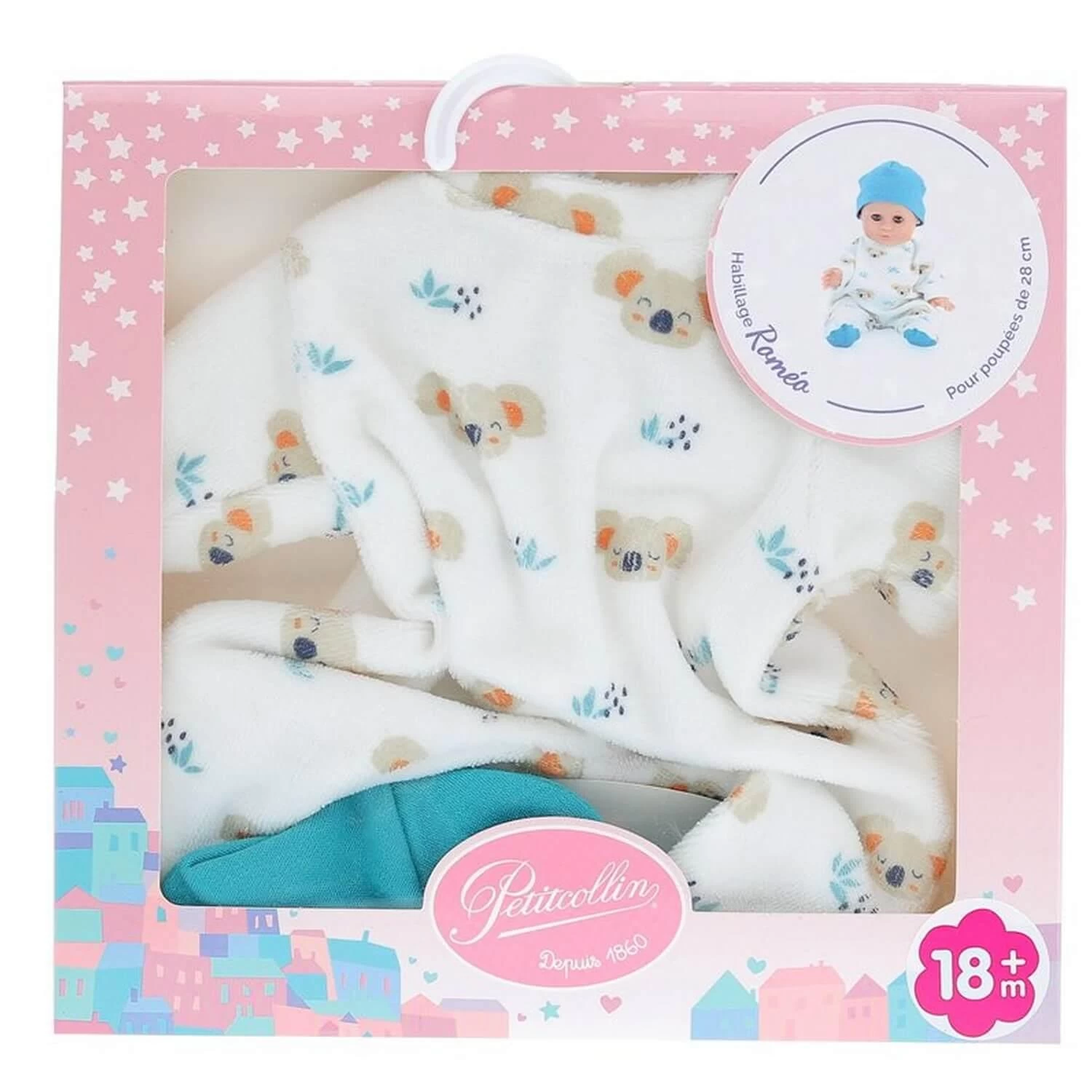 La tenue se compose d’un pyjama blanc avec motifs koala et d’un bonnet bleu. Une tenue parfaite pour habiller la poupée de votre enfant !