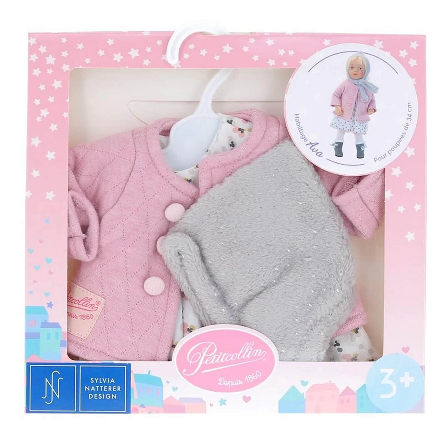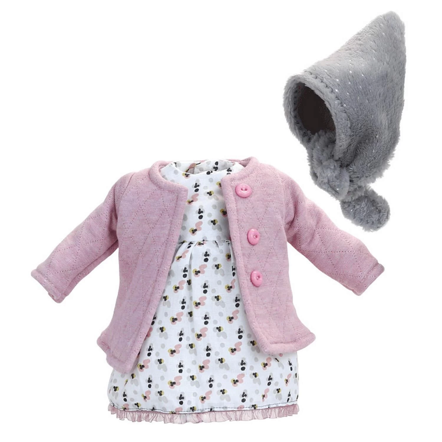La tenue se compose d’une robe blanche, d’un gilet rose et d’un bonnet gris. Avec cette tenue, votre poupĂ©e sera Ă©quipĂ©e pour affronter le froid hivernal.Â