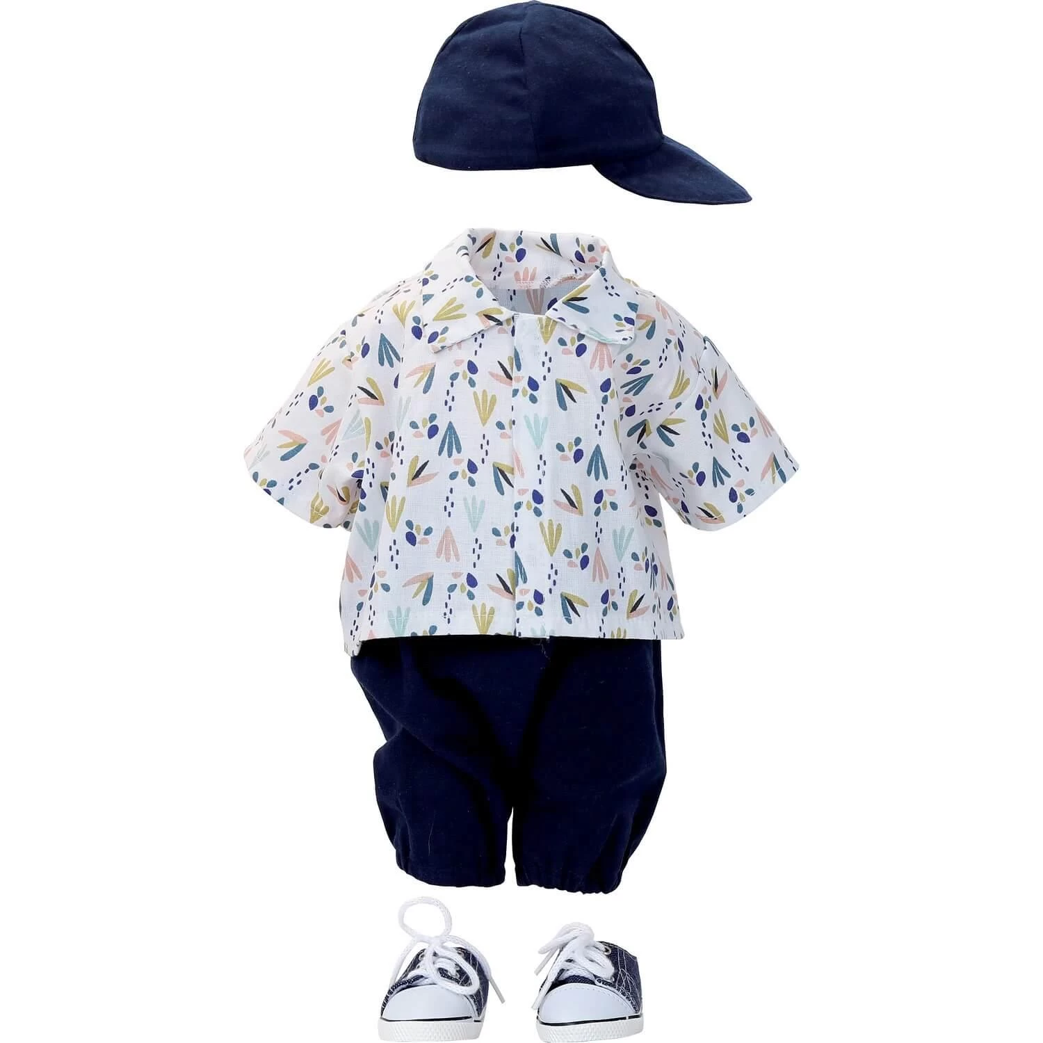 Cette jolie tenue “Street” est composée d’un bermuda bleu marine, d’une chemise blanche à motifs et est accompagné d’une casquette assortie au bermuda.