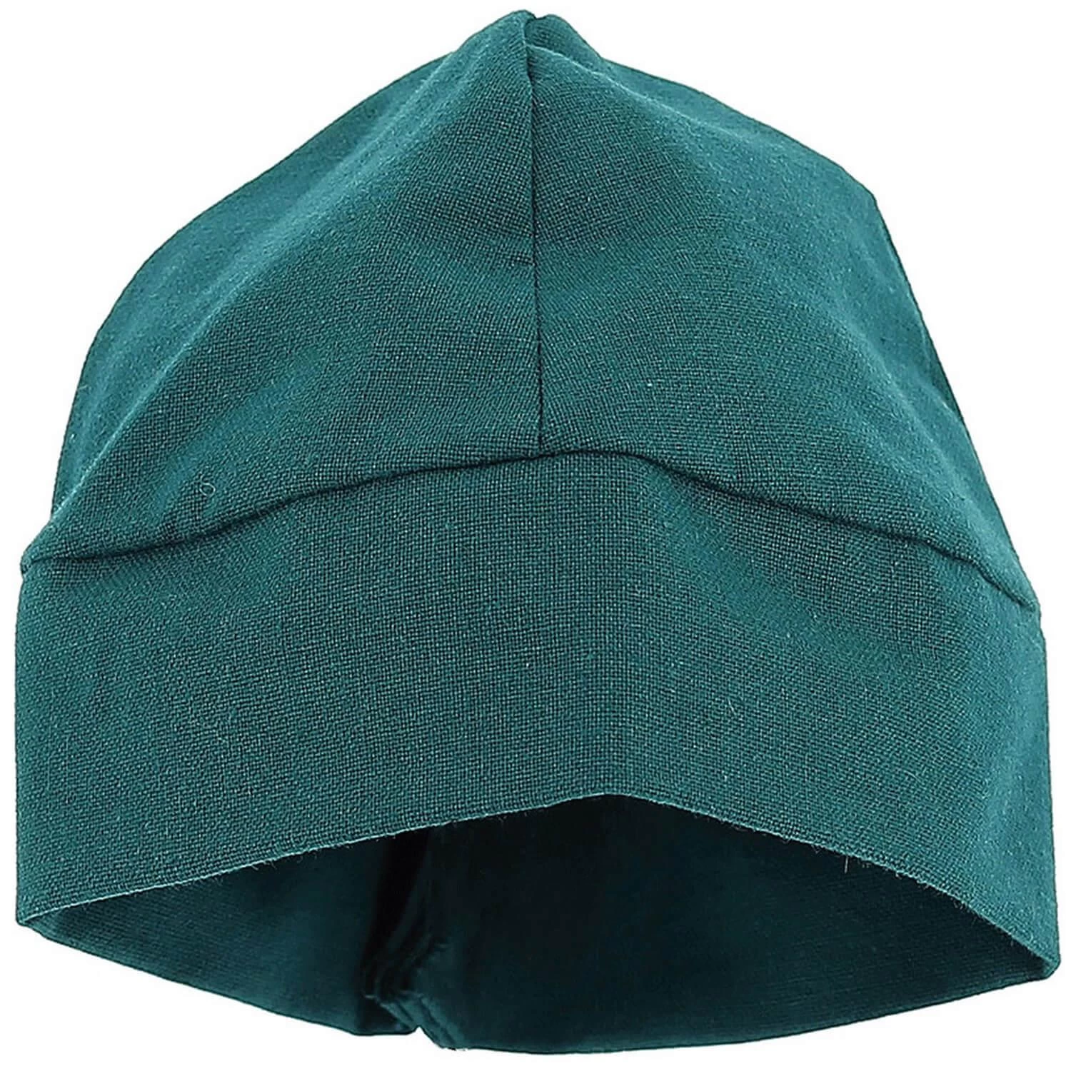 La tenue se compose d’un haut vert, d’un pantalon blanc à imprimés moutarde et noir et d’un bonnet vert assorti au haut. Les manches courtes du haut sont froncées au niveau des épaules.