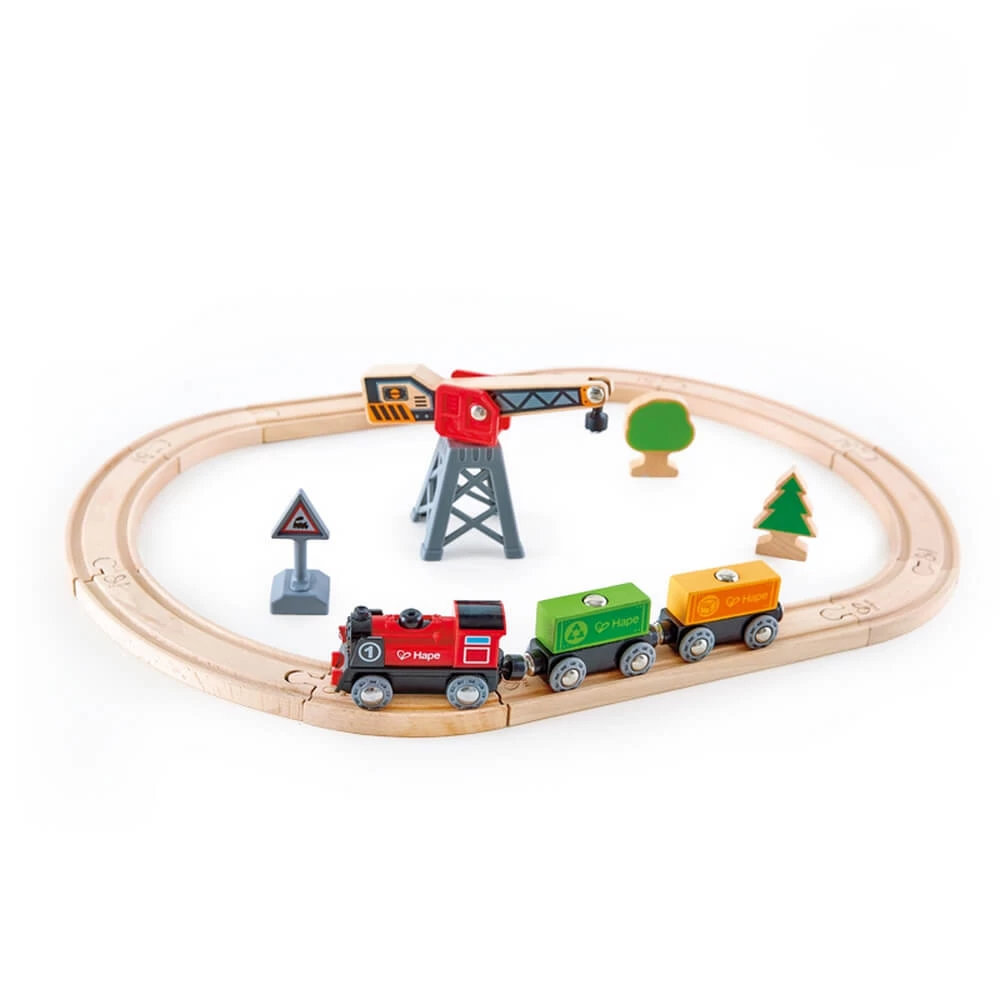 Le Circuit du train de marchandises de la marque Hape est un parcours de train de marchandises avec un décor. Il adapté aux enfants de plus de 3 ans.
