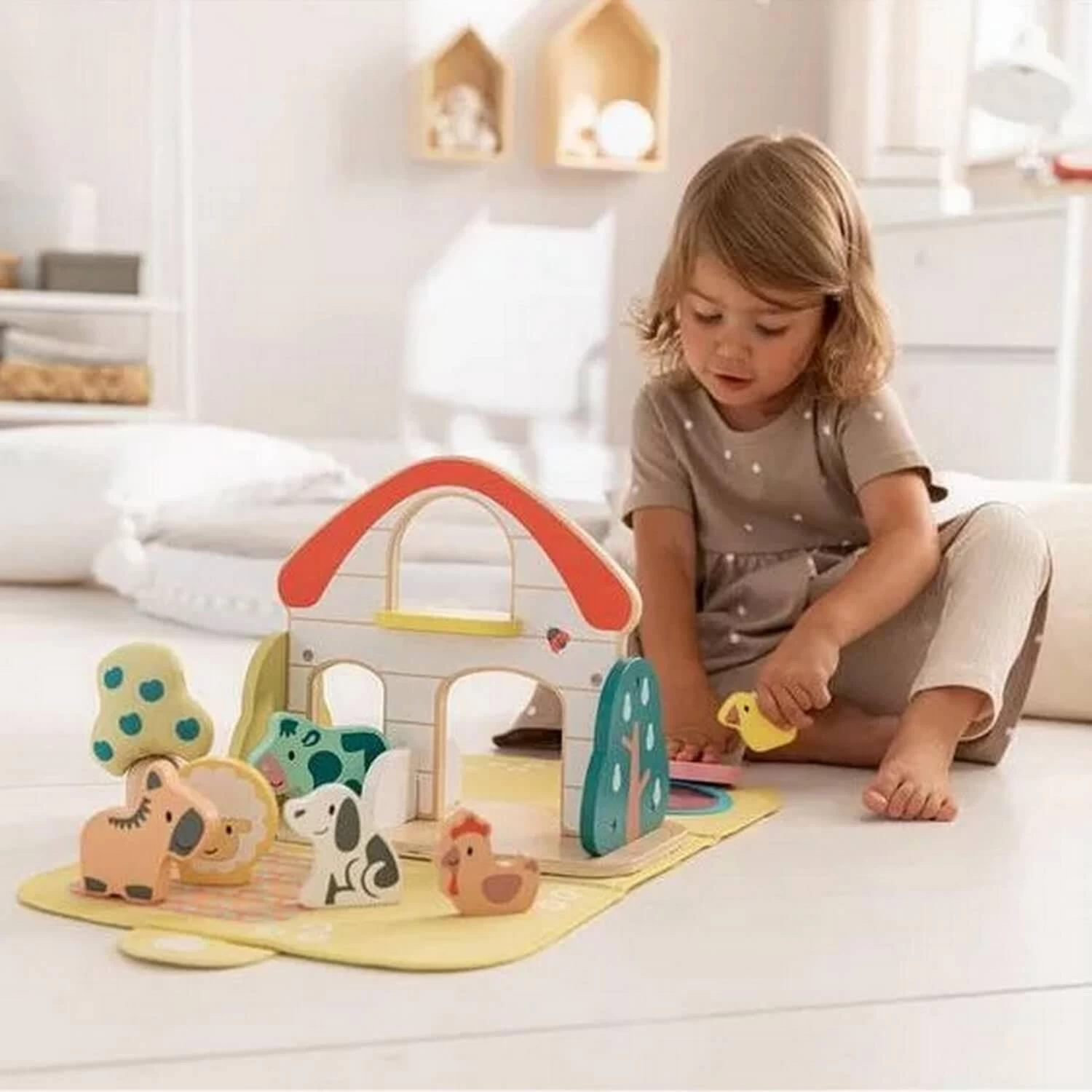 Cette ferme est un jeu d’éveil qui propose différentes activités pour l’éveil de bébé. En bois et en tissu, cette jolie ferme abrite des animaux de la ferme. Votre enfant va développer sa dextérité tout en favorisant sa reconnaissance des animaux de la basse-cour.