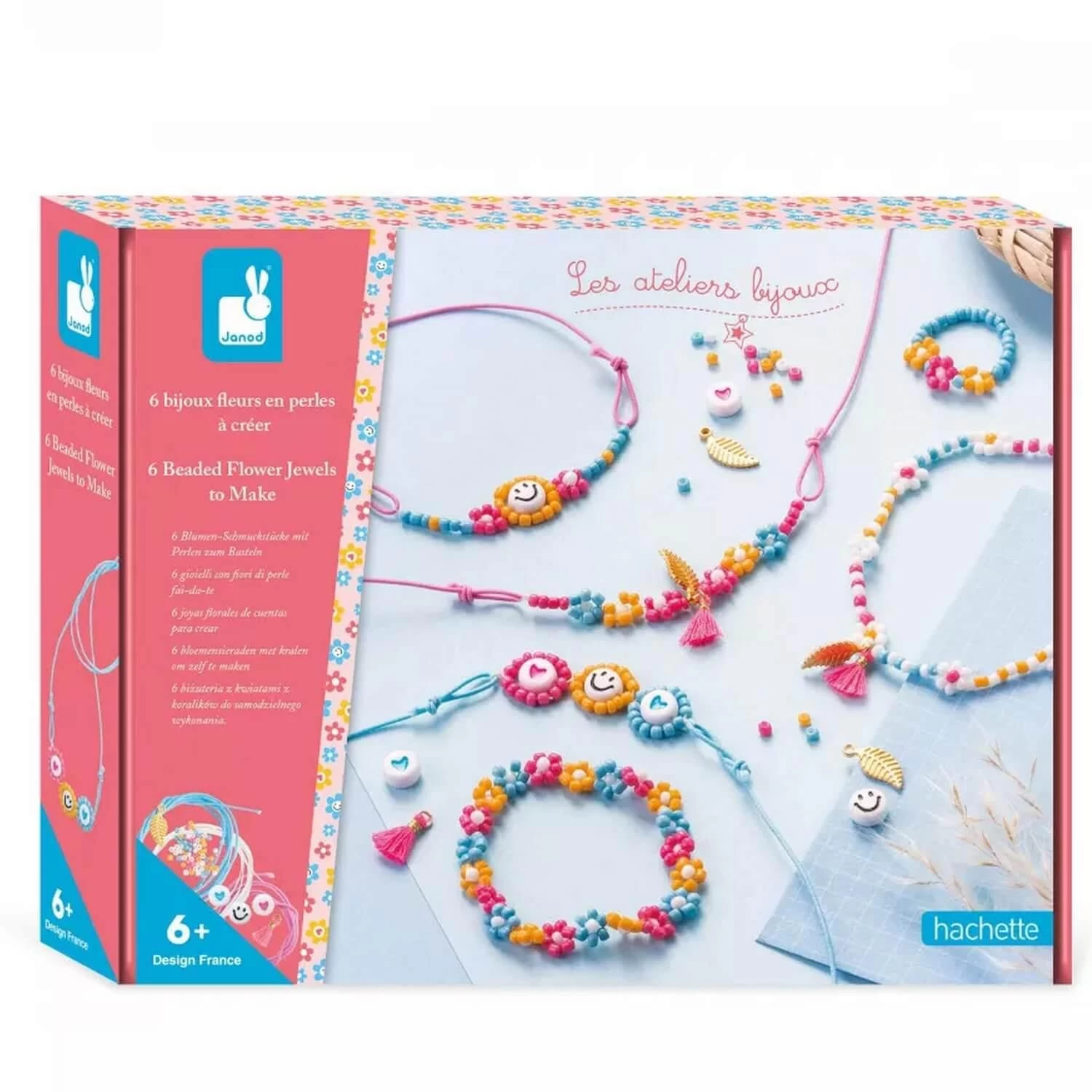 Ce kit créatif propose aux enfants à partir de 6 ans de réaliser 6 bijoux fleurs à l’aide de perles : un atelier bijoux idéal pour stimuler la créativité et la minutie des petits.