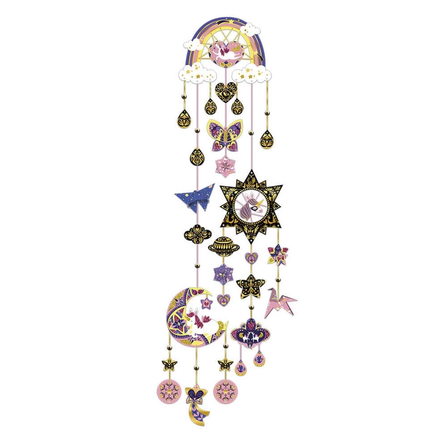 Cette activité de la marque Janod te permet de réaliser une activité créative autour d’un kit qui va te permettre de réaliser ton attrape-rêve personnalisé !