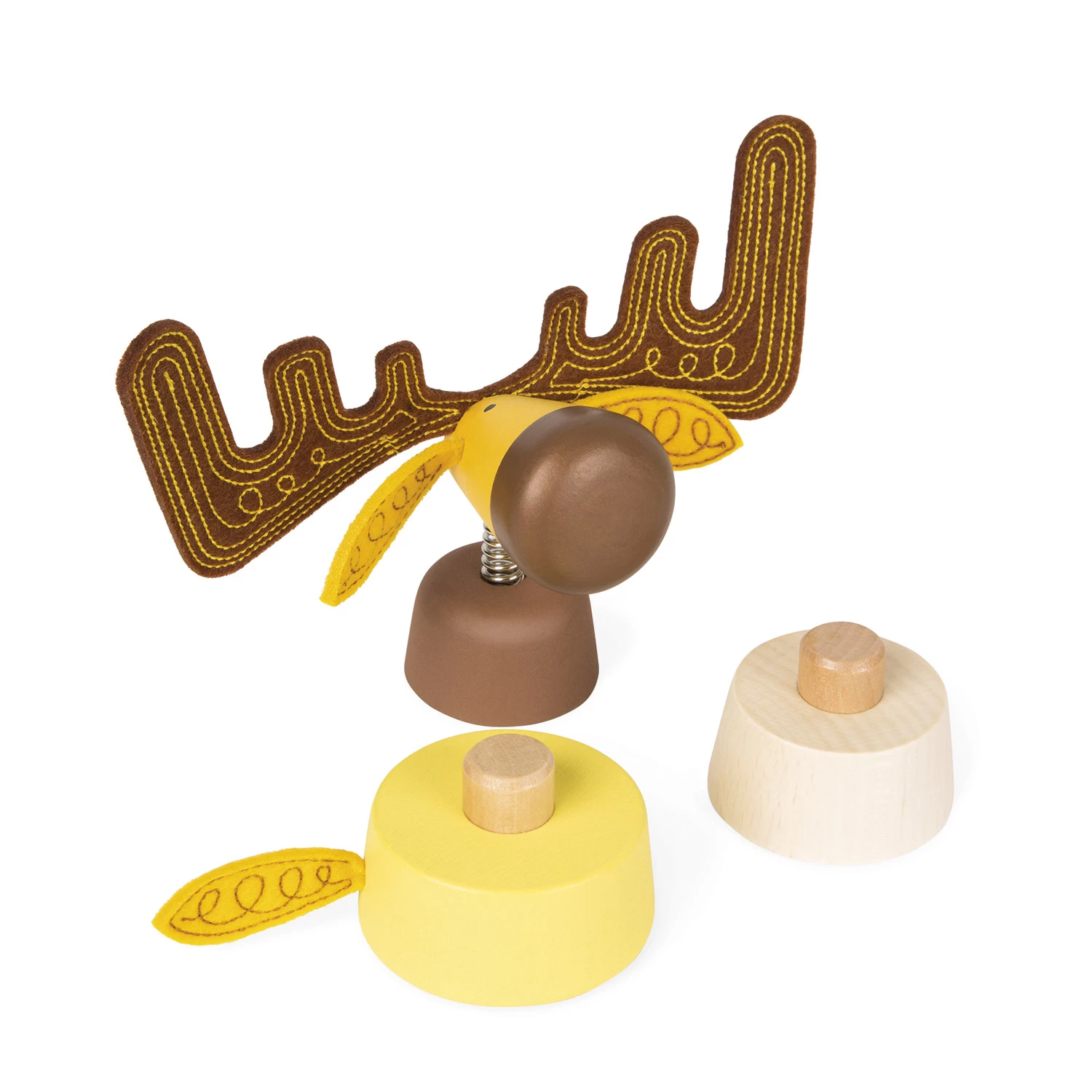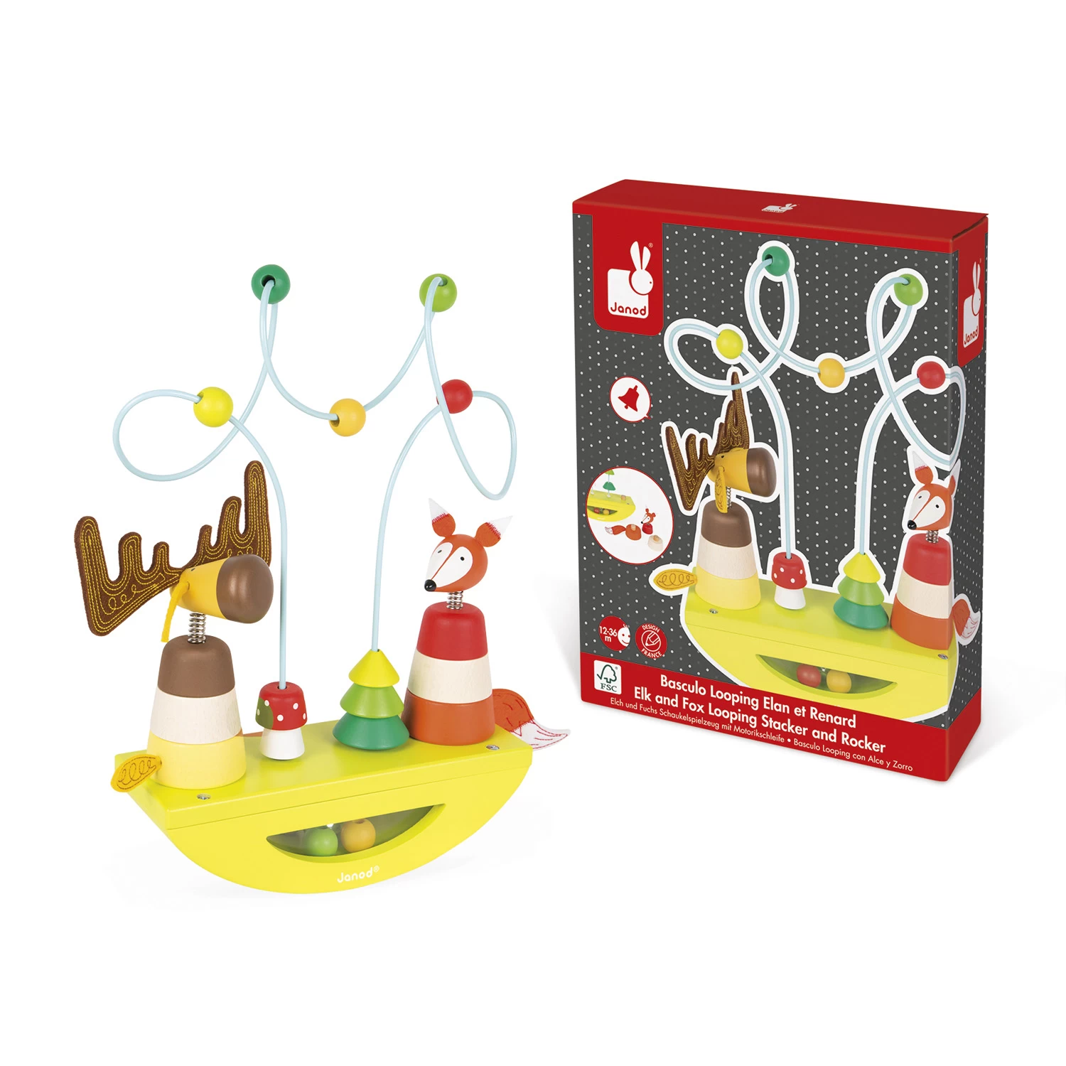 L’enfant prendra du plaisir à faire glisser les formes le long du fil métallique, les boules feront des looopings sous le regard amusé de l’élan et du renard !