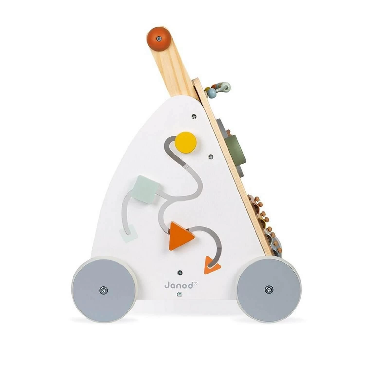 Ce joli chariot multi-activités à pousser est particulièrement adapté à l’apprentissage de la marche.