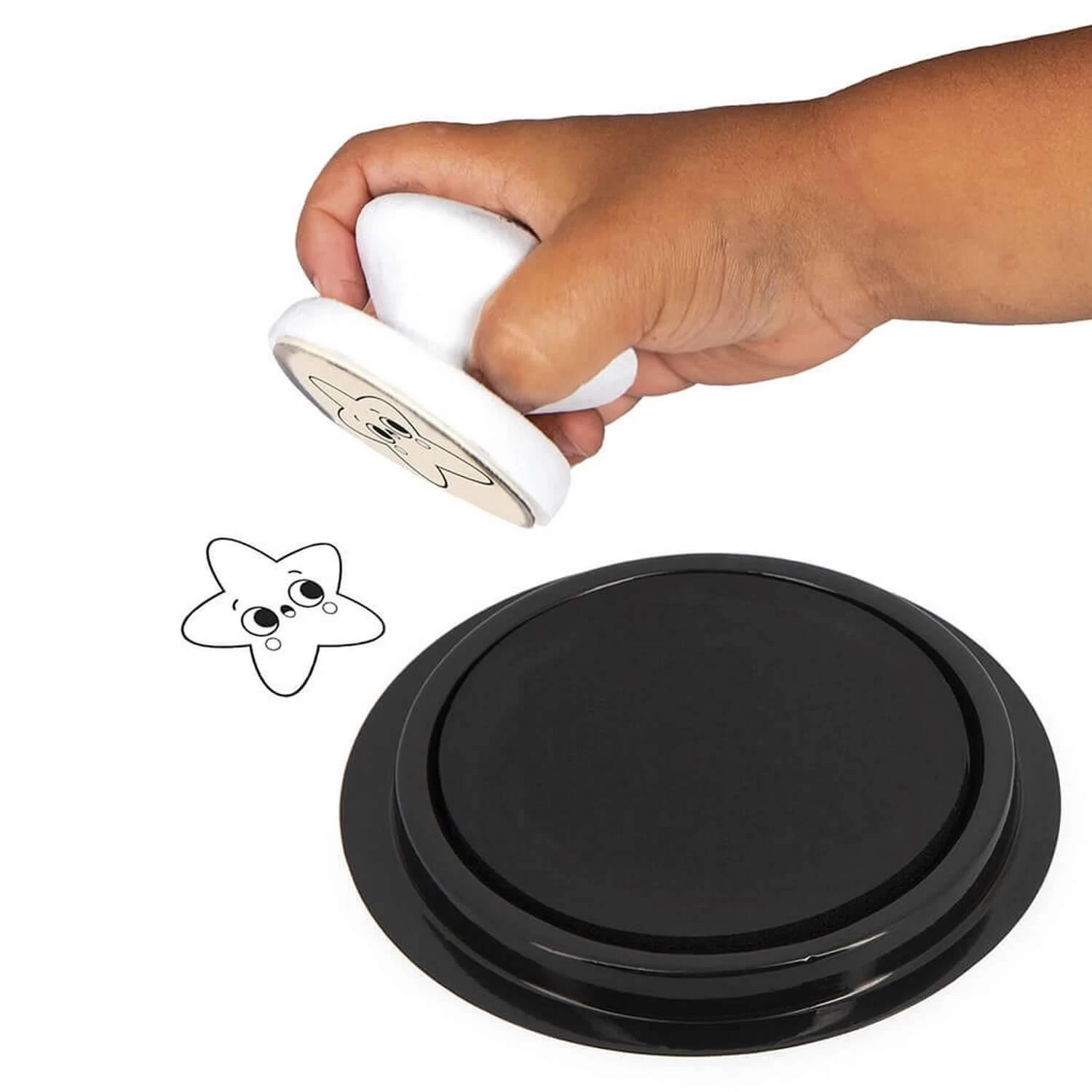 Ce coffret d’activités manuelles pour les plus petits contient 5 tampons et 1 encreur noir.