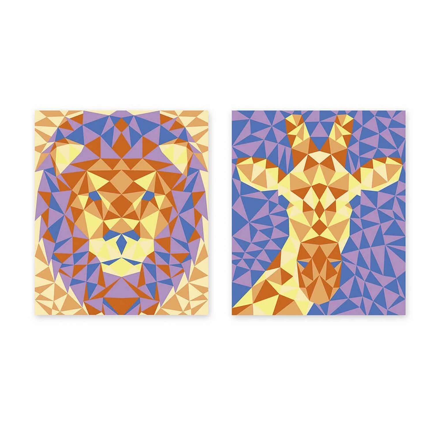 Il s’agit d’une activité idéale pour occuper un mercredi après-midi avec ses enfants. Laissez parler leur créativité et voyez comment ils sont capables de sublimer cette superbe girafe et cet impressionnant lion. Vous trouverez dans le coffret tout le nécessaire pour réaliser ces 2 tableaux.
