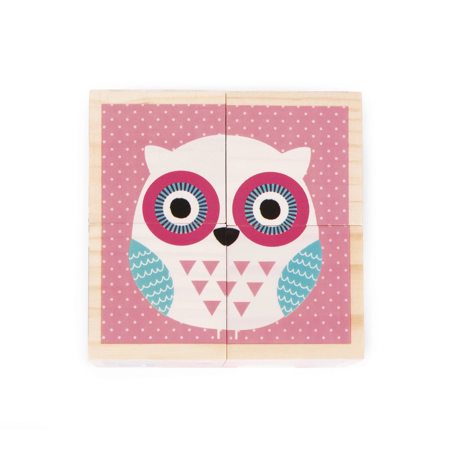 Ce jeu de construction se compose de 4 cubes en bois massif, dont chaque face est illustrée. En les remettant dans l’ordre, l’enfant va reconstituer six figures d’animaux tous plus mignons les uns que les autres : un hérisson, un hibou, un oiseau, un papillon, un pingouin et une baleine. Ce faisant, il travaille sa coordination, sa mémoire visuelle et son sens de l’observation, tout en enrichissant son vocabulaire et sa connaissance du monde.