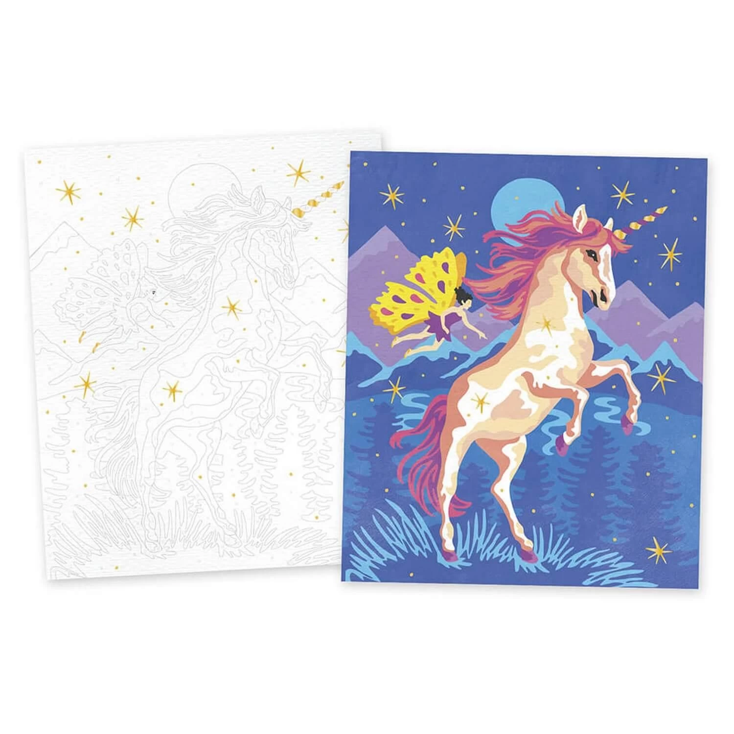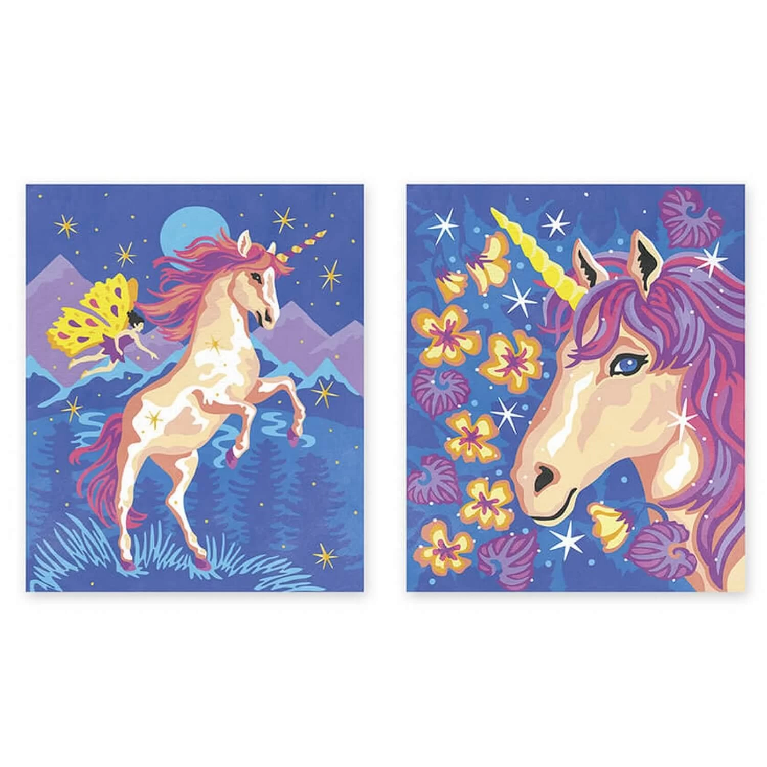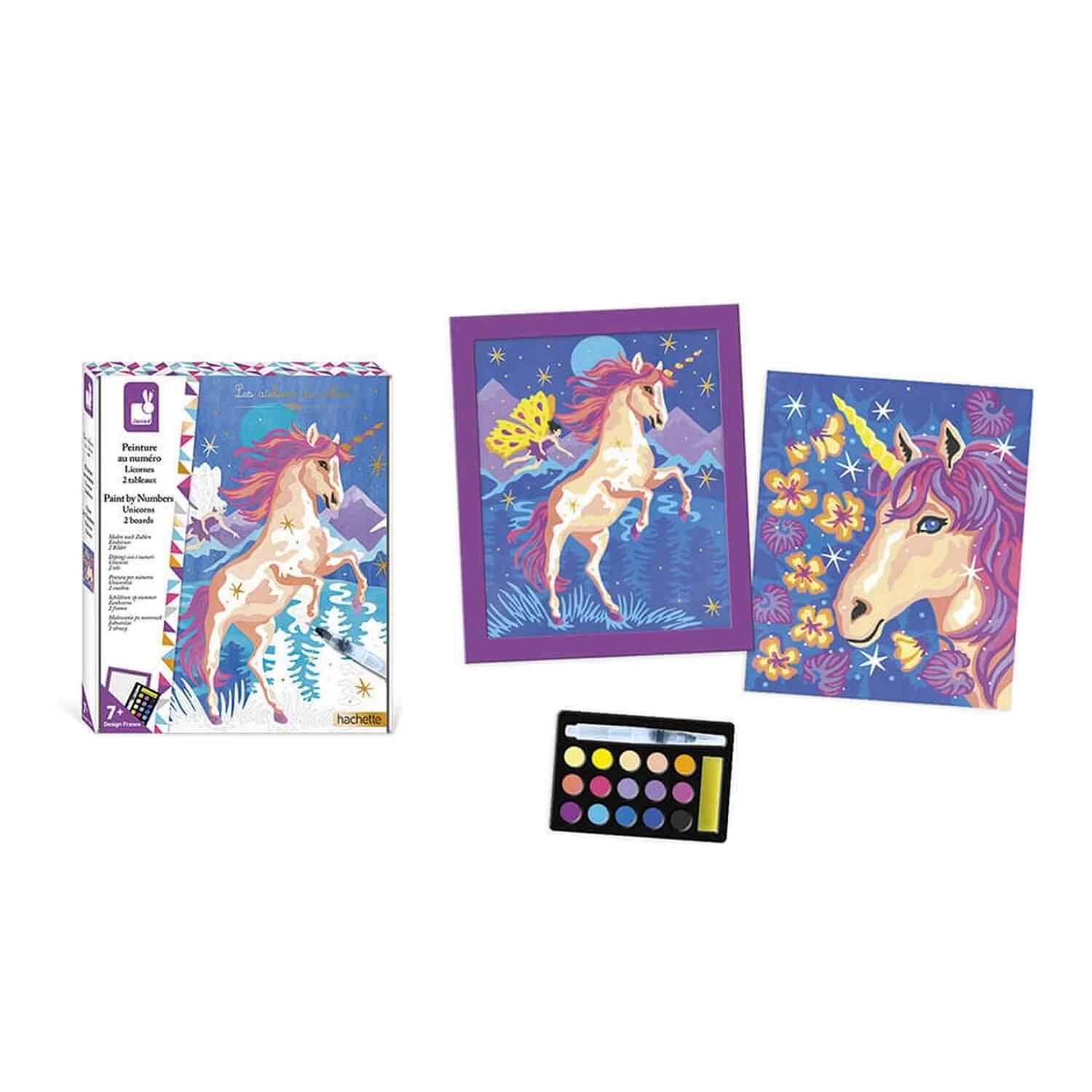 Découvrez ce coffret de peinture au numéro pour réaliser 2 tableaux sur le thème des Licornes de la marque Janod.