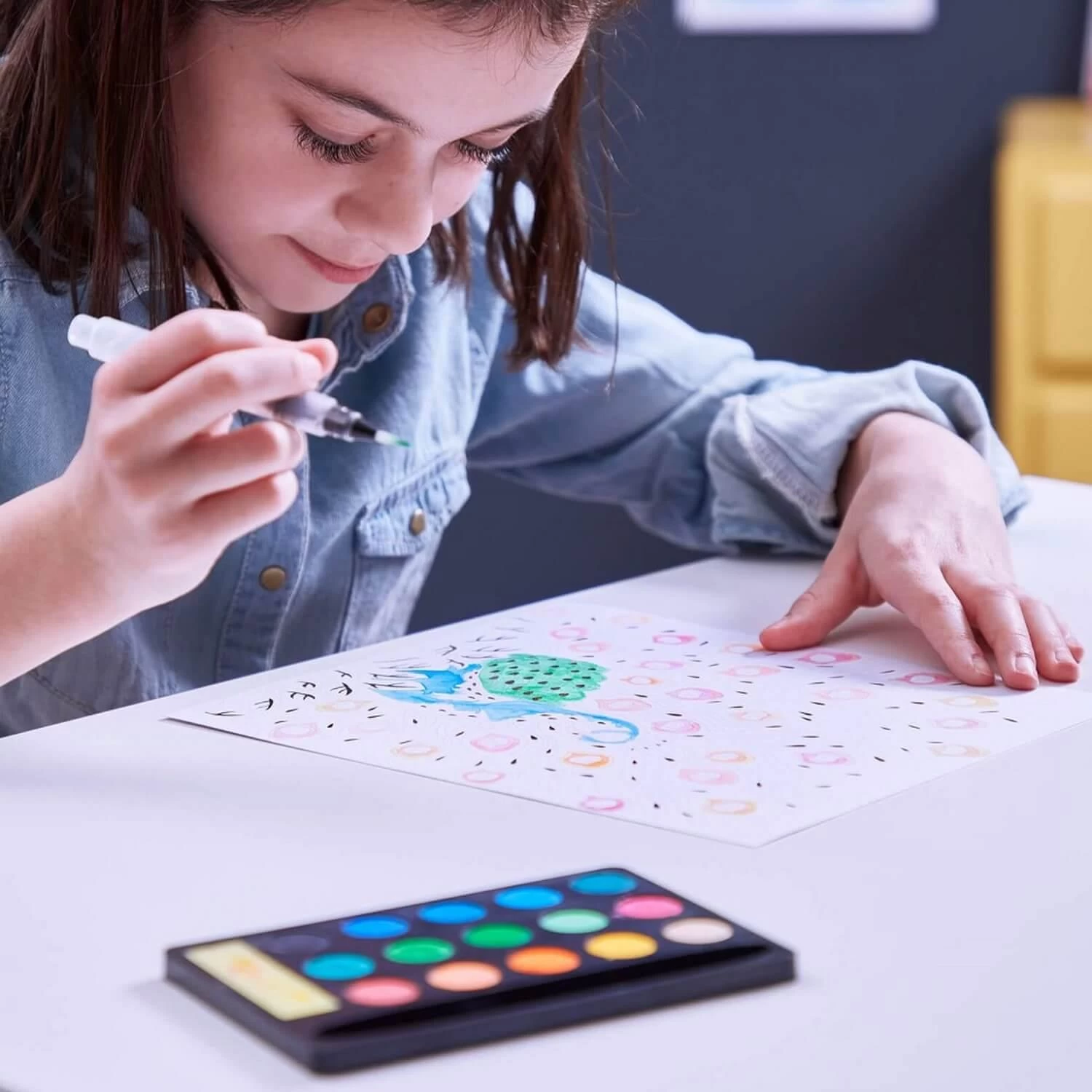Avec 15 godets de peinture aquarelle et un feutre-pinceau avec réservoir d’eau, peindre des oiseaux flamboyants est un vrai jeu d’enfant ! L’un des tableaux a même des traits en dorure, pour un résultat vraiment satisfaisant. Il y a également un cadre à peindre, pour exposer ses créations au mur et décorer sa chambre !