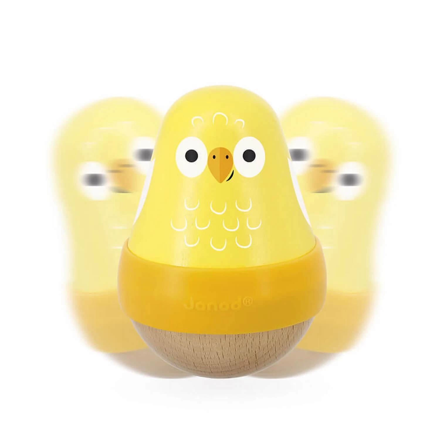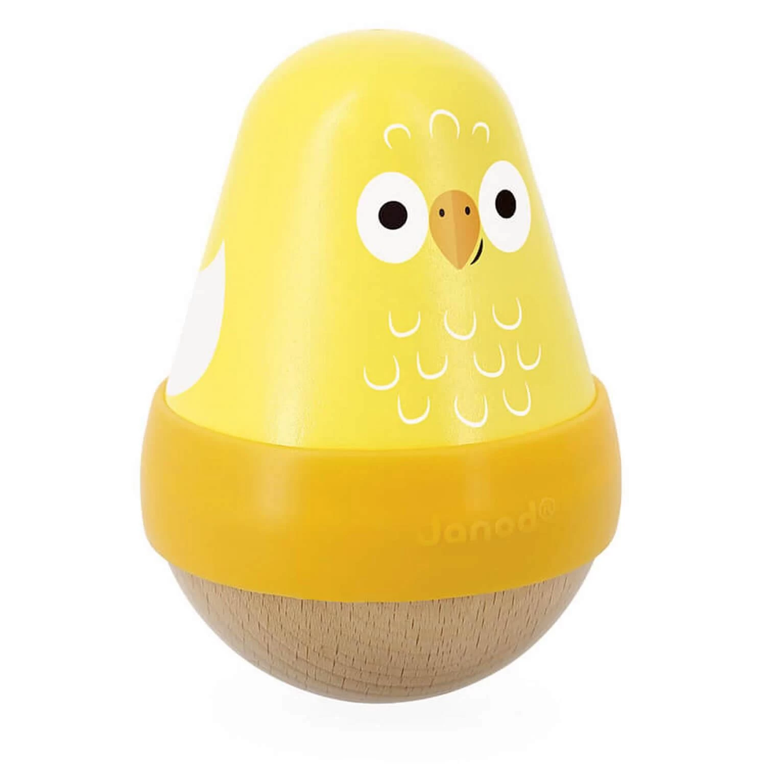 Joli petit oiseau devient joli petit culbuto ! Voici le plus mignon des jouets à bascule en bois, prêt à amuser bébé ! Il tourne, se dandine, puis revient dans sa position initiale. Avec un grelot à l’intérieur, cet adorable volatile stimulera l’ouïe des tout-petits dès 10 mois. Ils passeront de longues heures à le manipuler, le faire tourner, toujours fascinés par le son et le mouvement de leur culbuto préféré. Pour une prise en main facile par bébé, il est équipé d’un anneau en silicone. Le grelot à l’intérieur va stimuler l’ouïe de bébé.