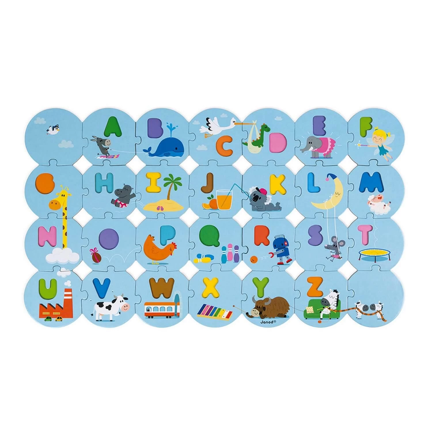 Puzzle de 28 pièces pour apprendre l’alphabet, de la marque Janod.