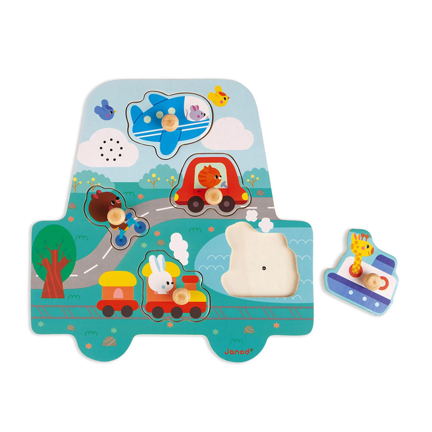 Les tout-petits sont fascinés par les véhicules surtout lorsqu’ils font du bruit. Ce puzzle à encastrement sur ce thème les encouragera donc à manipuler les pièces et à les remettre au bon endroit. Et en plus, ce puzzle est musical, ainsi lorsque l’enfant pose la pièce, le son des véhicules retentit pour le plus grand plaisir de votre petit.