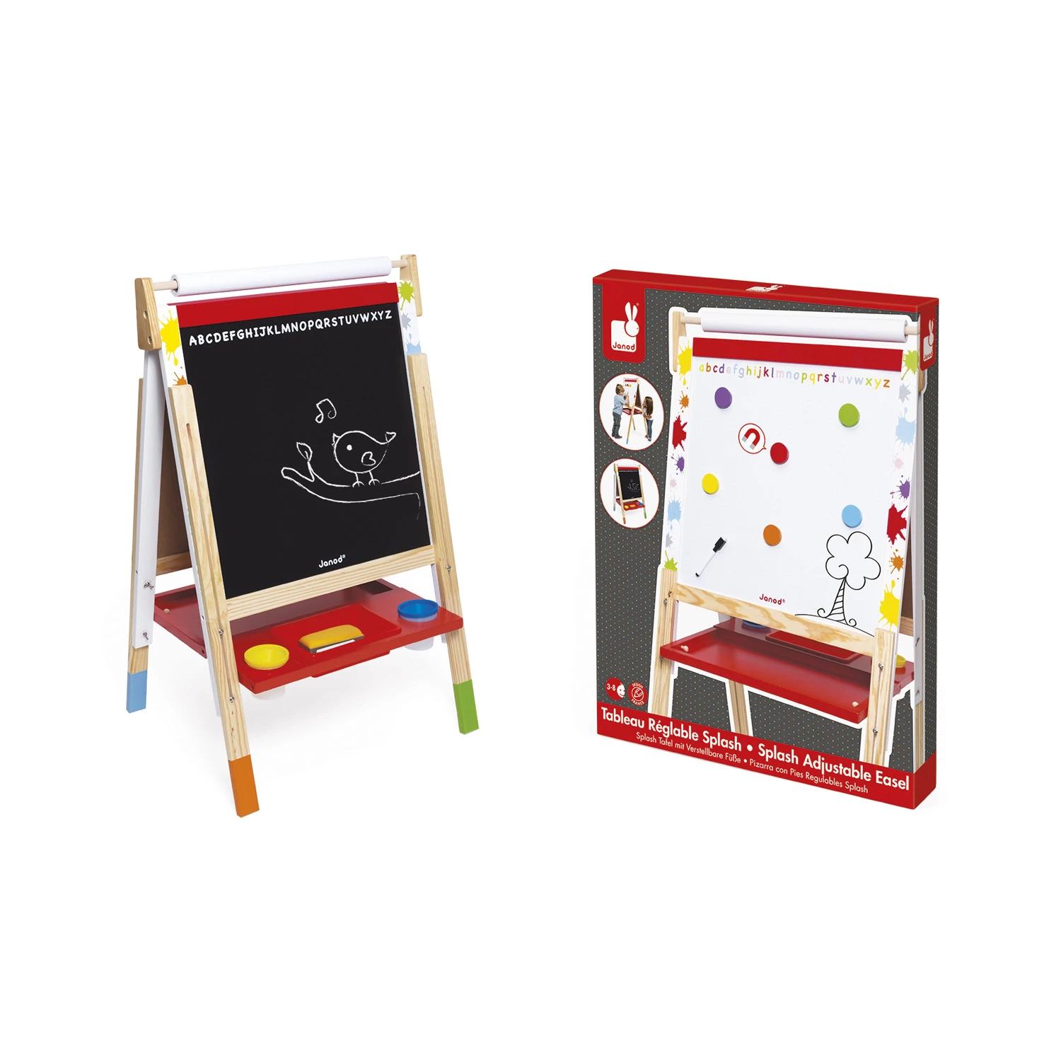 Très pratique, la hauteur du tableau est réglable de 91 à 126 cm pour s’adapter à la taille de l’enfant et il est en plus pliable pour un rangement facile.