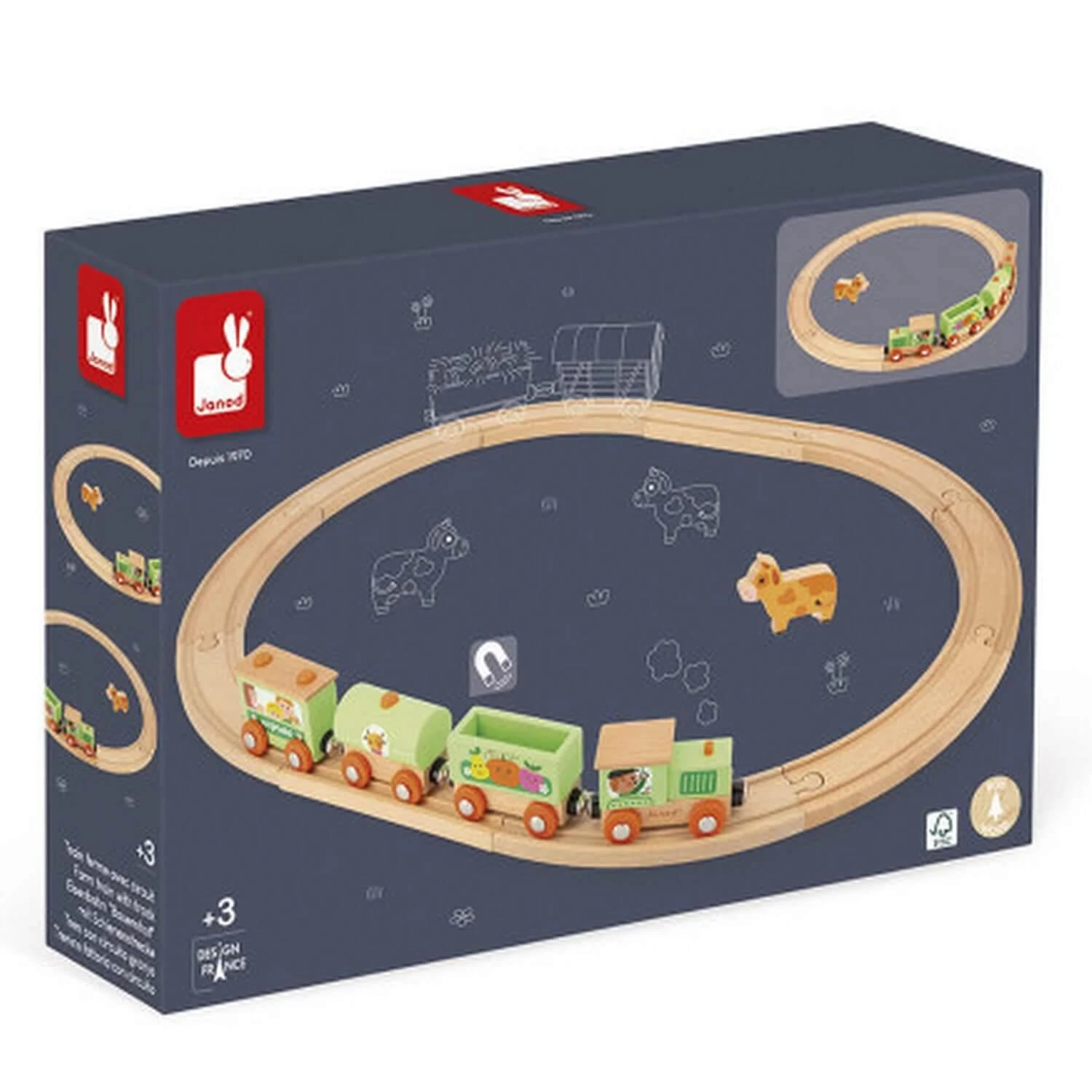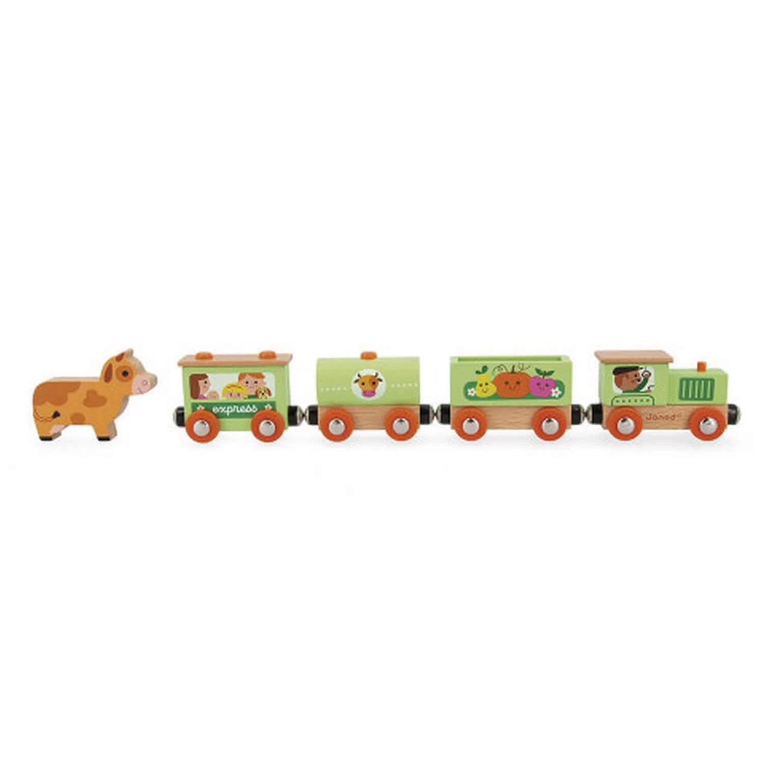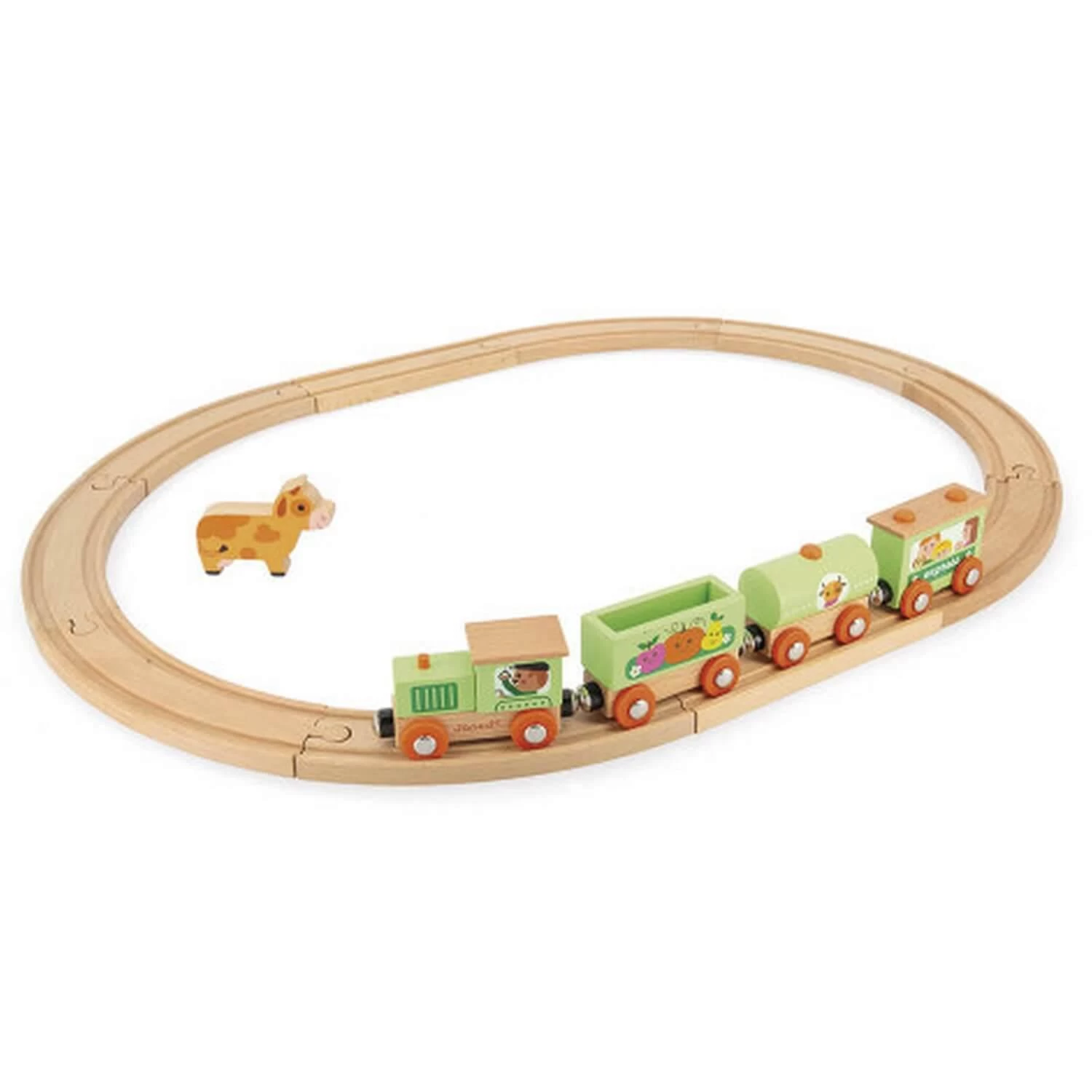 Le circuit est Ă construire grĂące aux 10 rails en bois (compatibles avec les rails existants sur le marchĂ©), 2 formes sont possible : un circuit ovale et un rond. Le train en bois peut se former et se dĂ©faire grĂące Ă un systĂšme d’aimants fixĂ©s sur chacun des 3 wagons et sur la locomotive. La vache en bois est amovible et peut trĂšs bien ĂȘtre utilisĂ©e pour jouer en dehors du train.