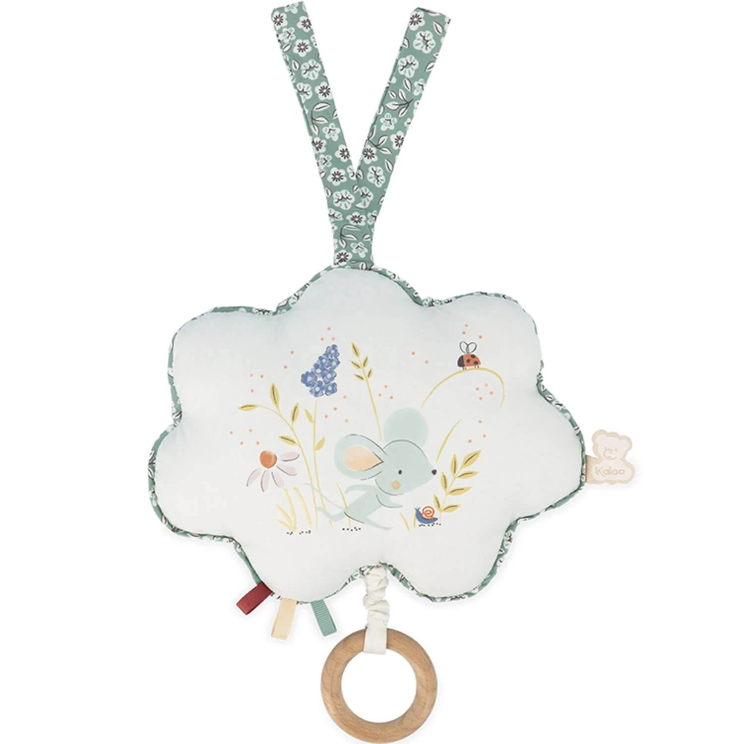 Ce coussin musical fait partie de la collection Petites Chansons de Kaloo, une gamme de boîtes à musiques en tissu et de douces marionnettes destinées à stimuler bébé et à favoriser les instants de partage parents-enfant.