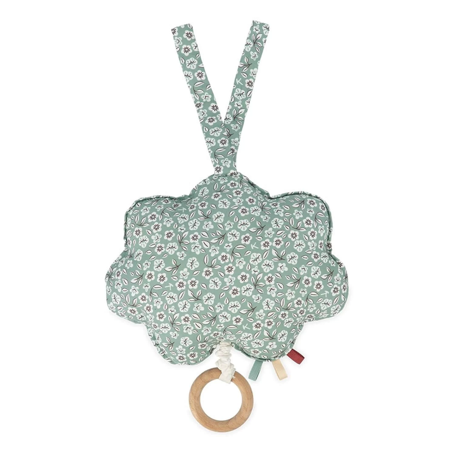 Une belle boîte à musique en tissu à suspendre près de l’enfant grâce à ses rubans, pour une touche mélodieuse de douceur au quotidien. Il suffit de tirer sur l’anneau en bois pour que la comptine démarre et stimule tous les sens du tout-petit : éveil musical, développement du langage et de l’imagination … Ce coussin musical orné de douces illustrations sur le thème de la comptine”Une souris verte” est en popeline et composé de rembourrage en polyester recyclé certifié GRS. L’anneau en bois de hêtre est facile à saisir par bébé, qui prendra plaisir à utiliser sa jolie boîte à musique lui-même en grandissant. Facile d’entretien, le coussin contient un boitier musical étanche et se lave à la main en surface. Adapté dès la naissance, ce coussin musical trouvera sa place près de la table à langer, du parc ou du lit de l’enfant pour rythmer ses journées et le distraire en musique.