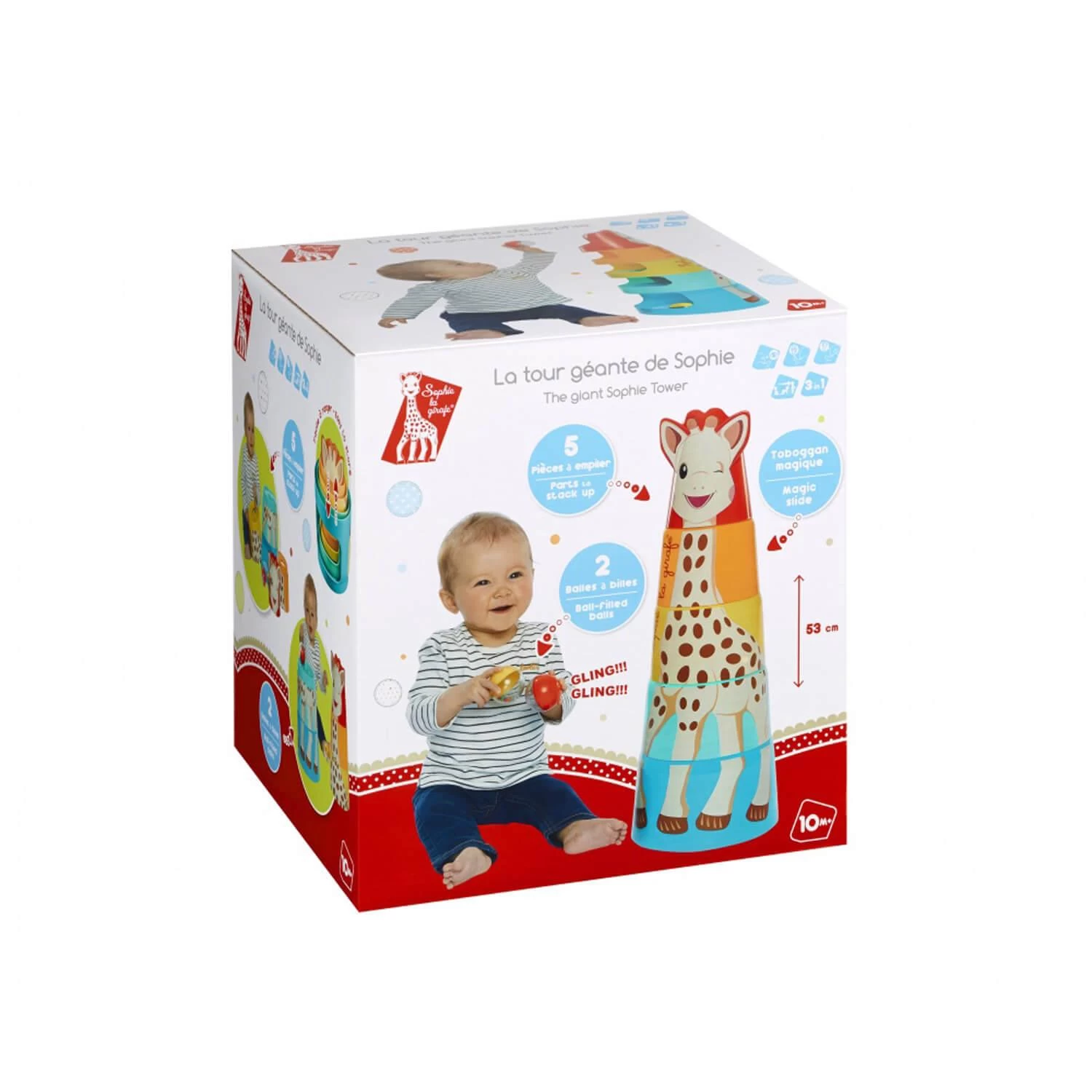 Une tour géante multi-activités à l’effigie de Sophie la girafe pour développer la dextérité et la motricité fine de bébé !