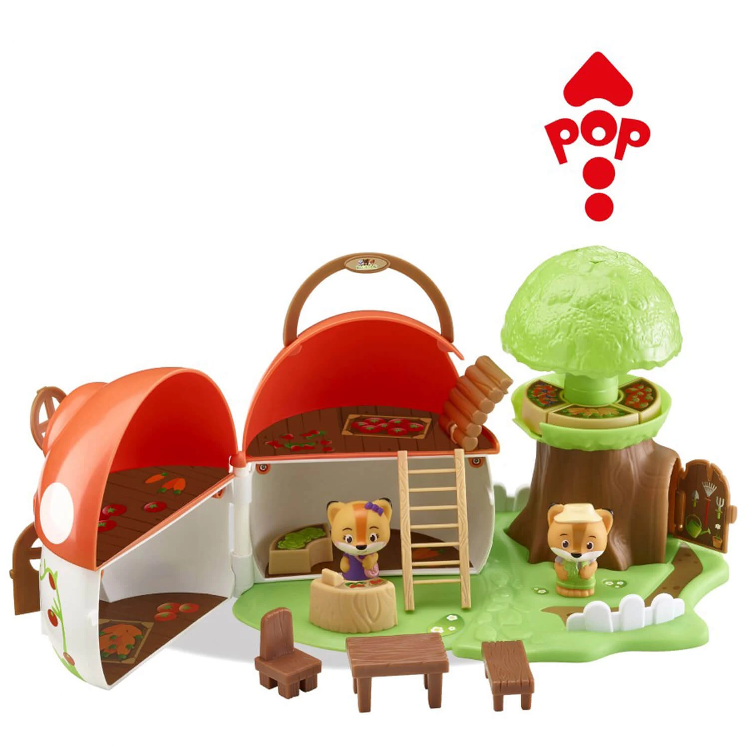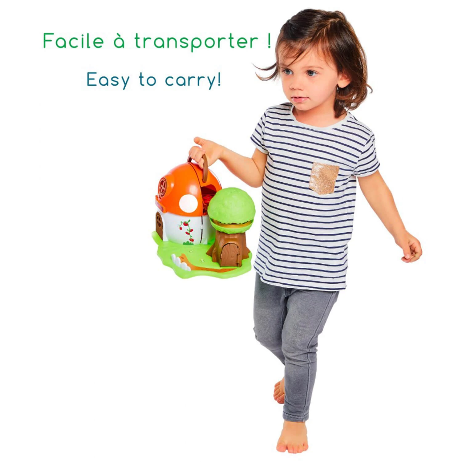 Le champignon s’ouvre pour laisser apparaître une boutique sur 2 étages, il suffit d’appuyer sur le buisson et « Pop ! “. découvrez ce qui se cache à l’intérieur ! Vous y trouverez de nombreuses activités pour vous amuser : un pont, une porte et une fenêtre amovibles, une cachette secrète, des accessoires… tout un univers pour se raconter des histoires !