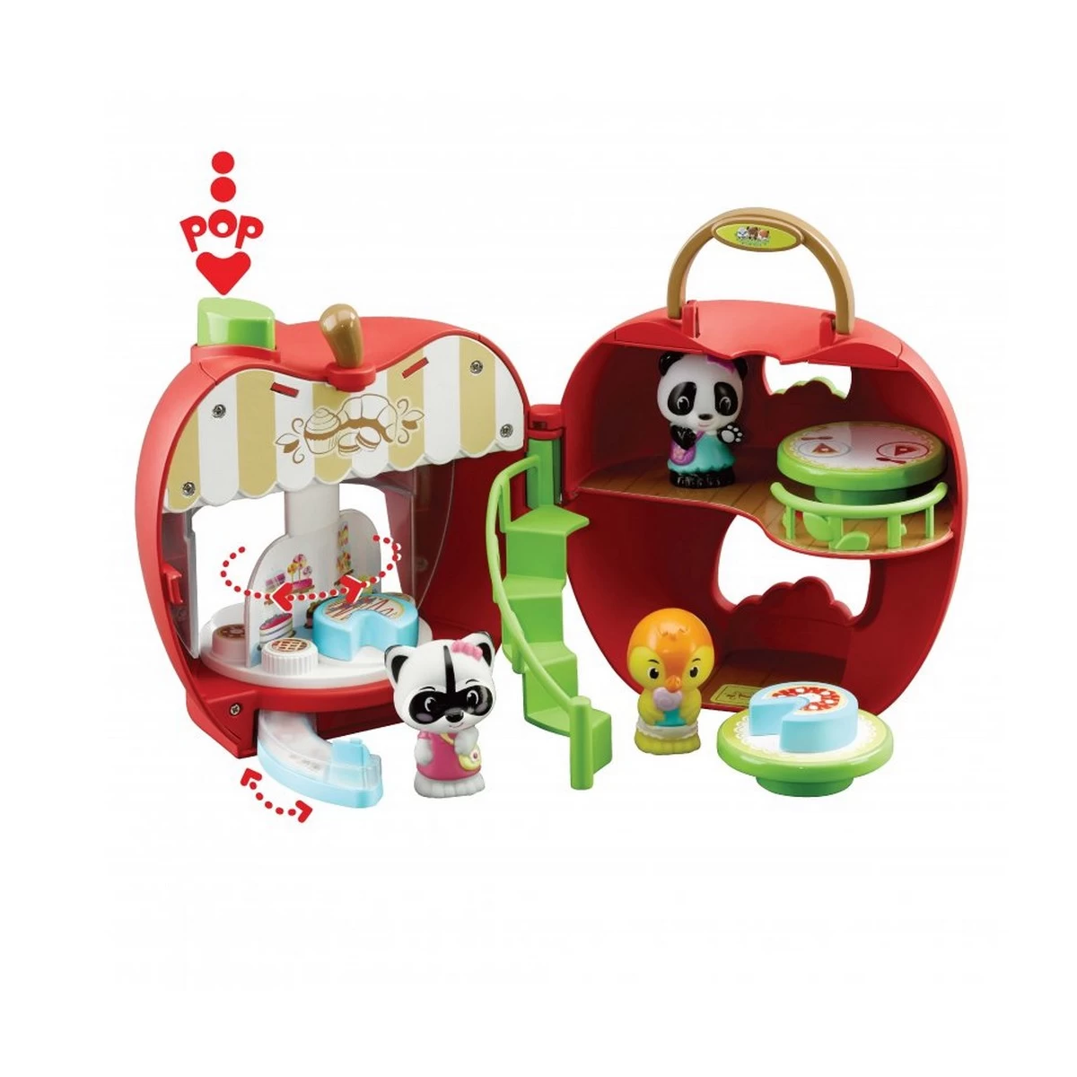 De l’extérieur, une jolie vitrine met en valeur toutes les gourmandises. Surprise, en appuyant sur le bouton feuille, «Pop!” le plateau central tourne et permet de découvrir de nouveaux gâteaux!