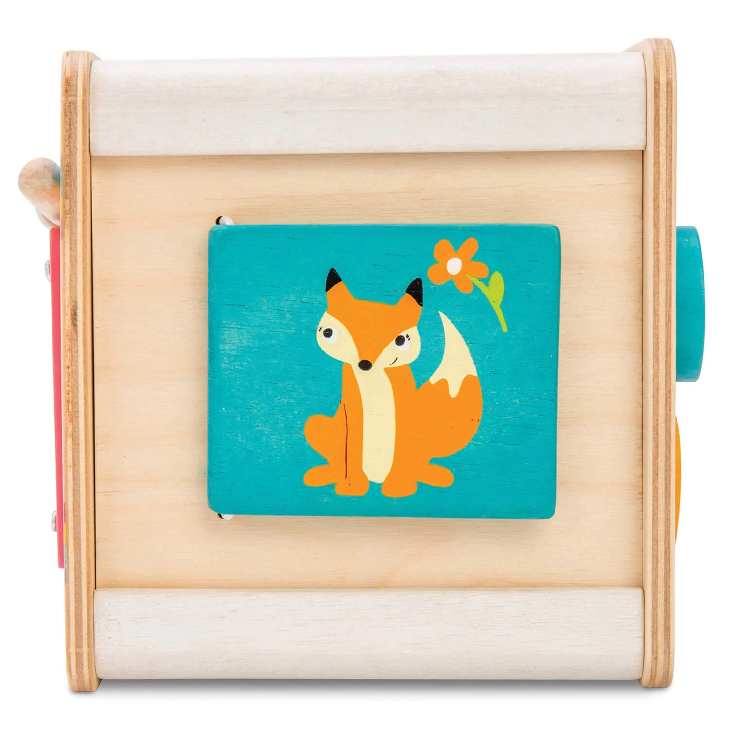 Avec ce petit cube en bois rempli d’activités, votre enfant ira de découverte en découverte !