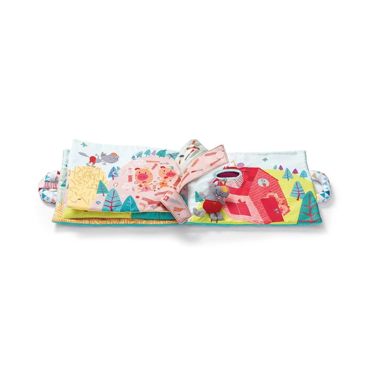 Ce livre en tissus plein d’inventivité retrace l’histoire des 3 petits cochons de façon ludique. Aidez les cochons à construire leur maison et à échapper au loup…